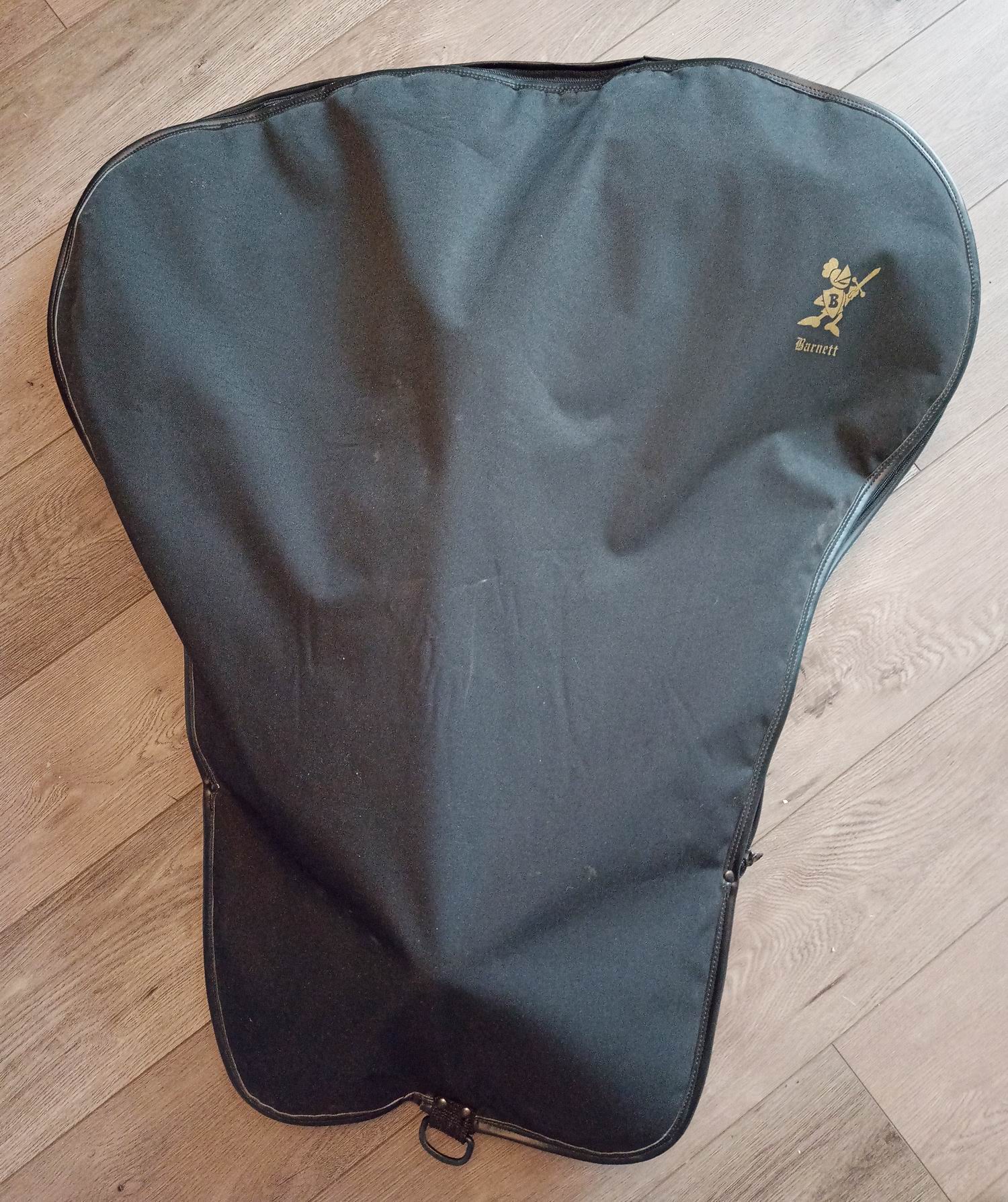 Mit dabei ist eine Zielvorrichtung, etliche Pfeile, Wachs für die Sehne und eine Tragetasche. Die Armbrust stammt aus einem Nachlass. Der Vorbesitzer hatte sie nicht oft oder gar nicht benutzt, weshalb sie noch sehr stramm in allen mechanischen Teilen daherkommt.
