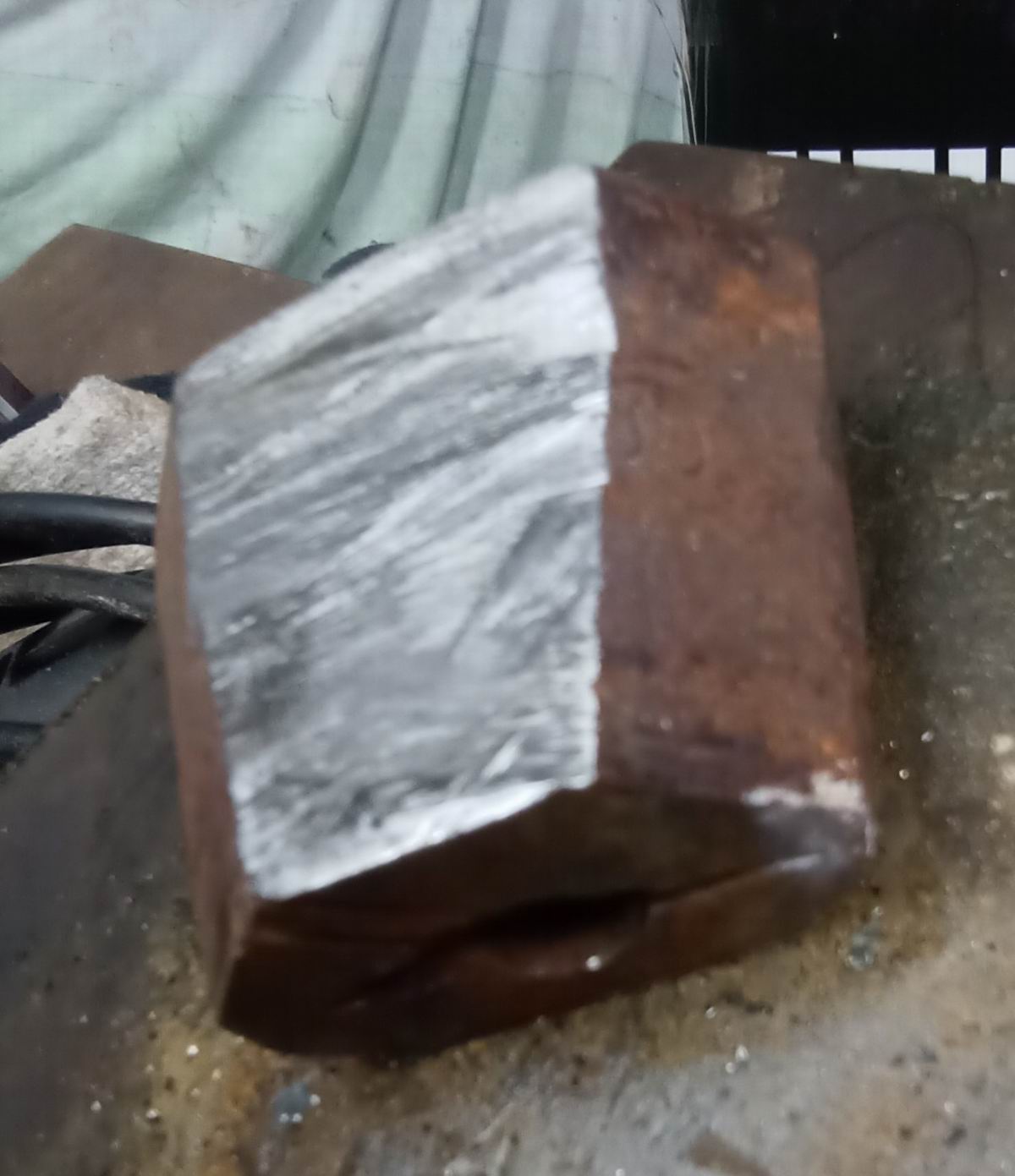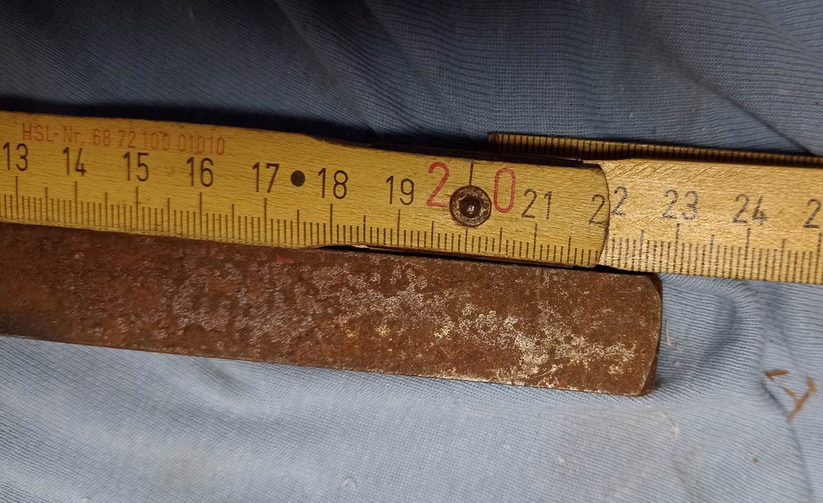 Als erstes kam die Parierstange dran, da sie auf die Angel zuerst aufgeschoben werden muss. Anbei eine Fotodokumentation der Arbeitsschritte. Das Stück Eisen ist ein Flohmarktfund.