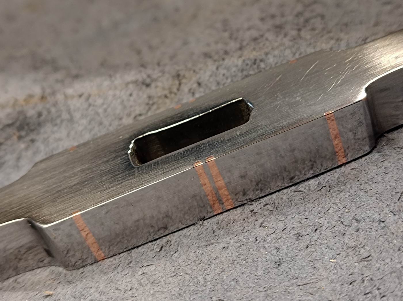Die Kupfereinlagen sind mir nicht gut gelungen. Hatte die Einschnitte in das Material teilweise zu tief gemacht.