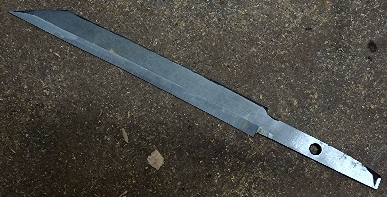 In diesem Fall hat eine alte Heckenschere herhalten müssen. Der Stahl ist nach dem neu Härten so hart, dass man beim Schärfen kaum Material abtragen kann.