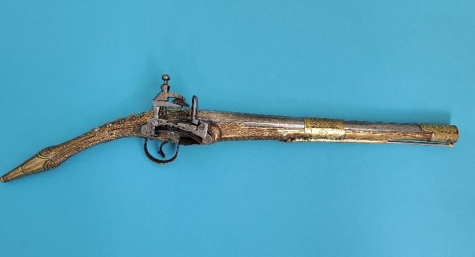 dass der Reiter besser daran täte, seine Pistole dem Gegner an den Kopf zu werfen, die Chance, ihn zu treffen, sei dabei deutlich höher". Im Gegensatz zu den Militärpistolen Mittel- West- und Nordeuropas waren die Metallpistolen Griechenlands und des Balkans zugleich aber auch dekoratives Statussymbol ihres Trägers und vor allem sein persönlicher Besitz, ohne die er nie aus dem Haus ging. Dazu kam, dass eine solche Pistole wegen ihrer Unverwüstlichkeit weitervererbt werden konnte. Natürlich war die Ausgestaltung der Pistolen von den finanziellen Möglichkeiten des Bestellers abhängig, eine sicherlich damals sehr teuere Silberpistole aus Albanien habe ich angehängt.