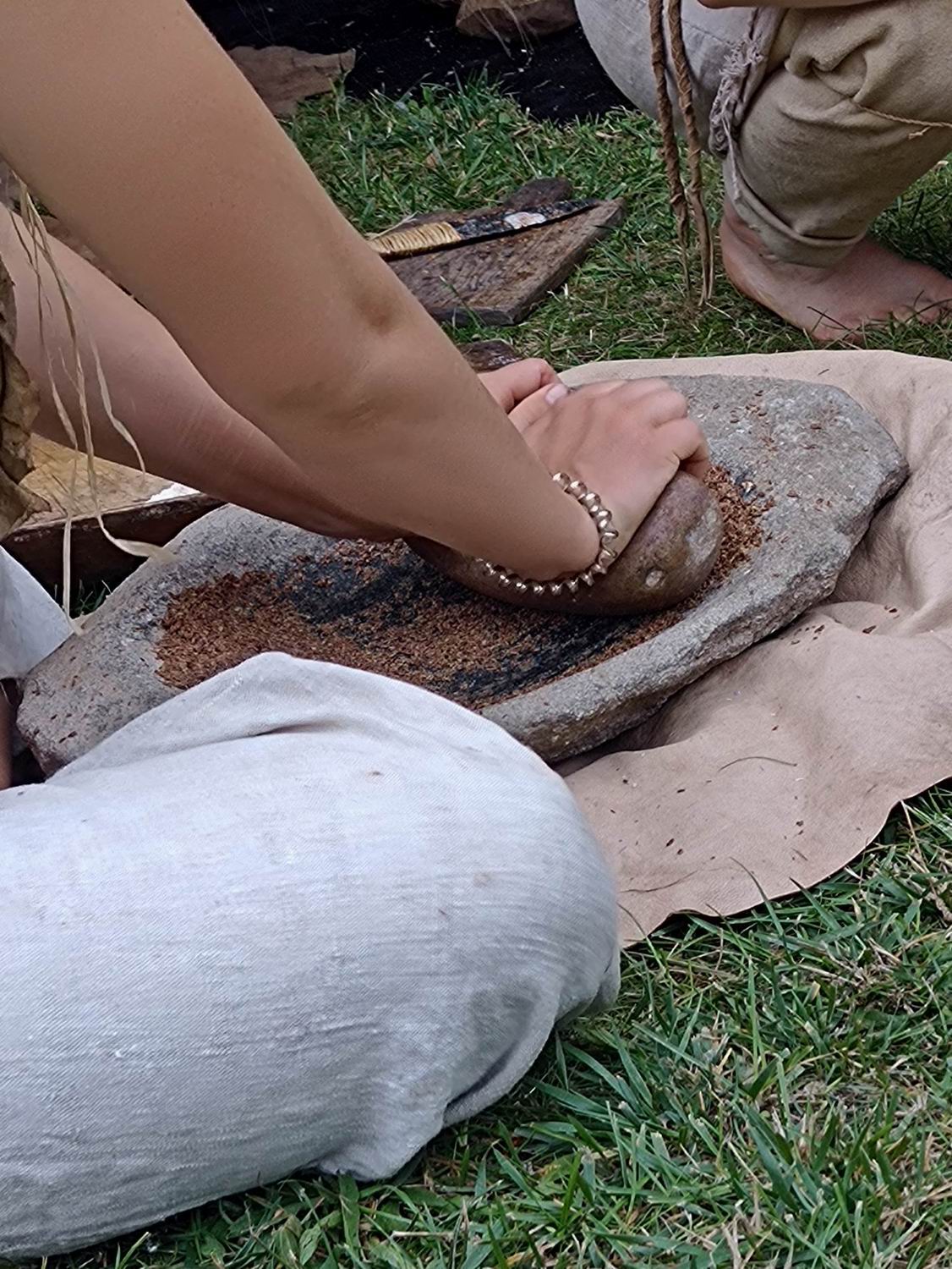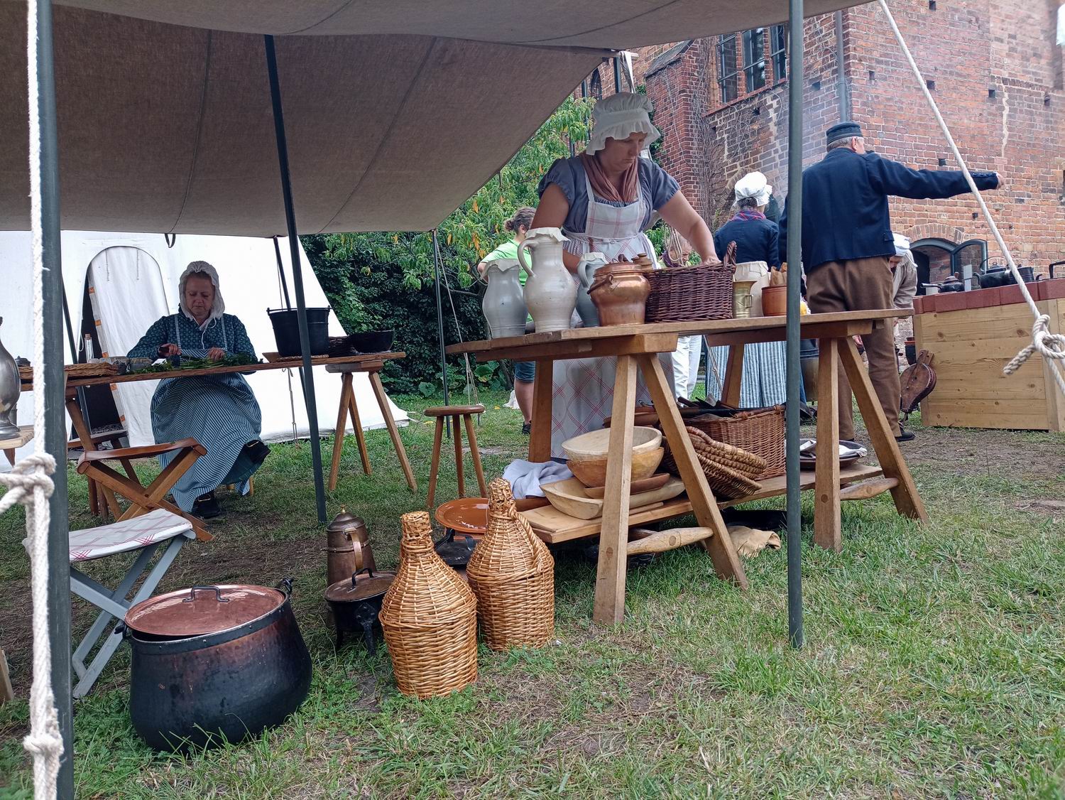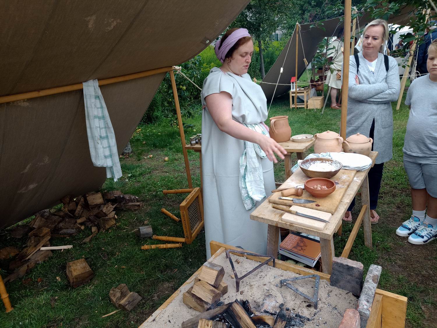 Die liebe Agnes war das erste Mal auf der Archäotechnica und war begeistert. Zumal es dieses Jahr nicht um Waffen ging und eigentlich auch nicht um ihr sonstiges Repertoire, mittelalterliche Stoffe. Hier konnte sich sich beim Kochen auslassen, was ihr sehr gefiel. Wir Besucher haben an ihren mitgebrachten Gewürzen gerochen, wobei ich feststellen musste, dass ich zwar einiges vom Geruch her erkannte aber nicht wusste um was es sich handelt.