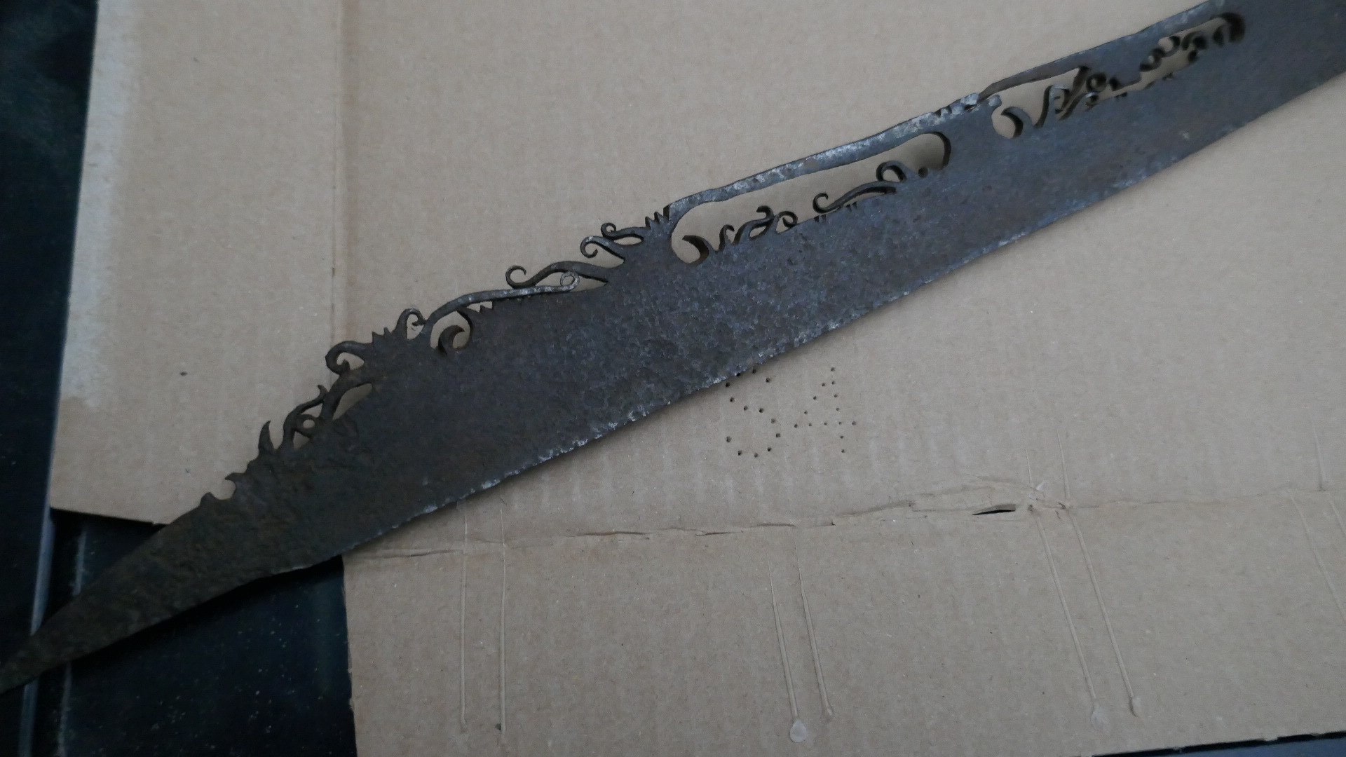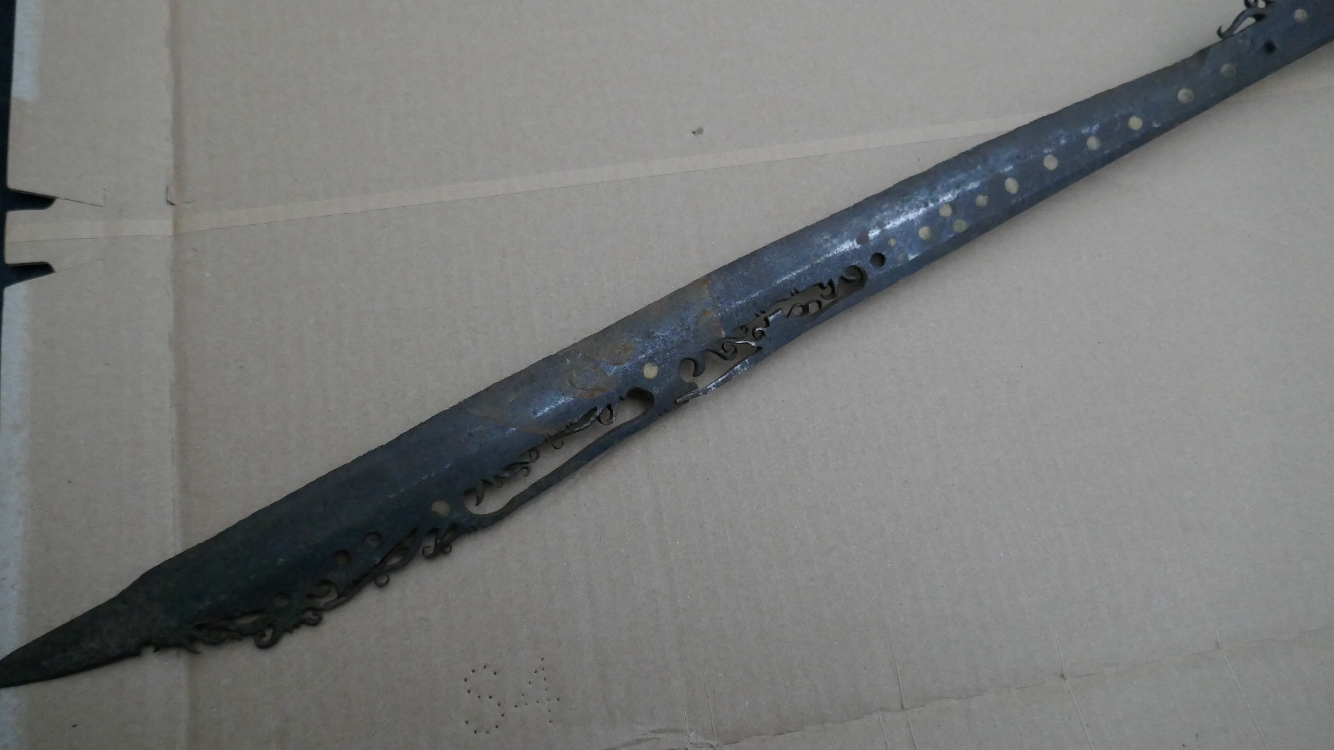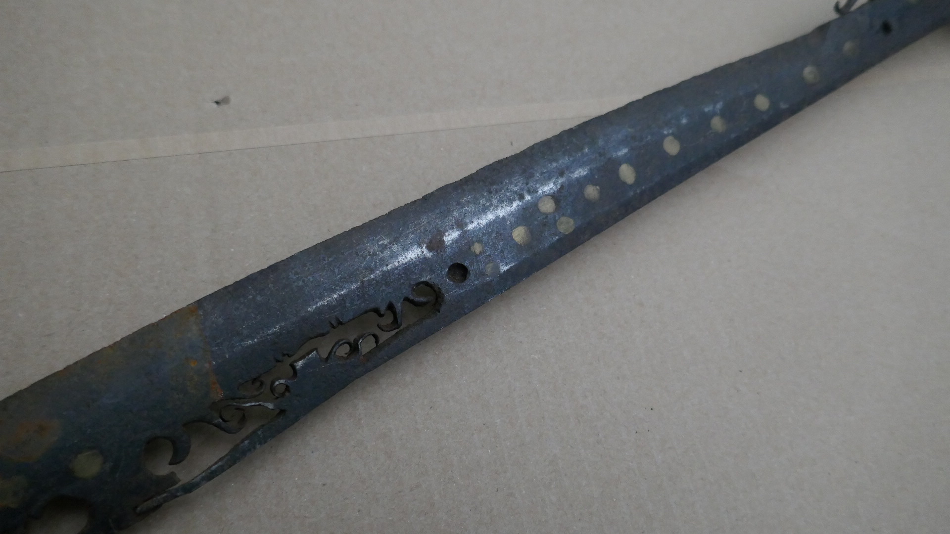 Klinge Eisen mit Durchbrüchen und Messing?-einlagen.