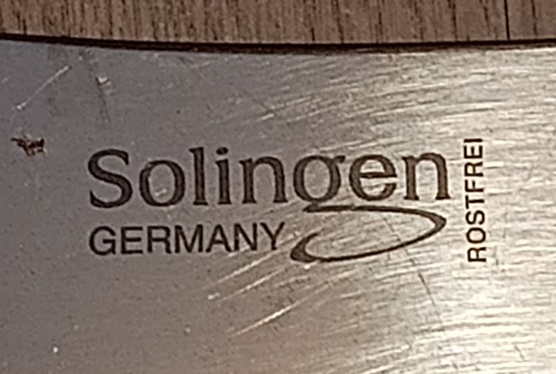 Schöne Stücke, die Ihr hier zeigt und so schön restauriert - vielen Dank für das Zeigen! Hier meines aus "GUSSSTAHL", das ich schon an anderer Stelle einmal vorgestellt habe. Das "waffenaffine" Logo habe ich immer noch nicht auflösen können.
