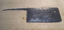 Küchenbeile mit Steckerlgriffe sind etwas seltener. Am Ende der Bilderreihe deshalb das im davor gezeigten vorherigen Foto zu sehende rechte Beil noch im Fundzustand. Bei diesem wurde der Griff auch kürzer gewählt. Aufgrund dessen, dass der Griff nicht bis zum Klingenblatt aufgeschoben wird, kann das Griffholz, ob in diesem Fall jetzt ursprünglich oder nicht, auch kürzer gewählt werden.