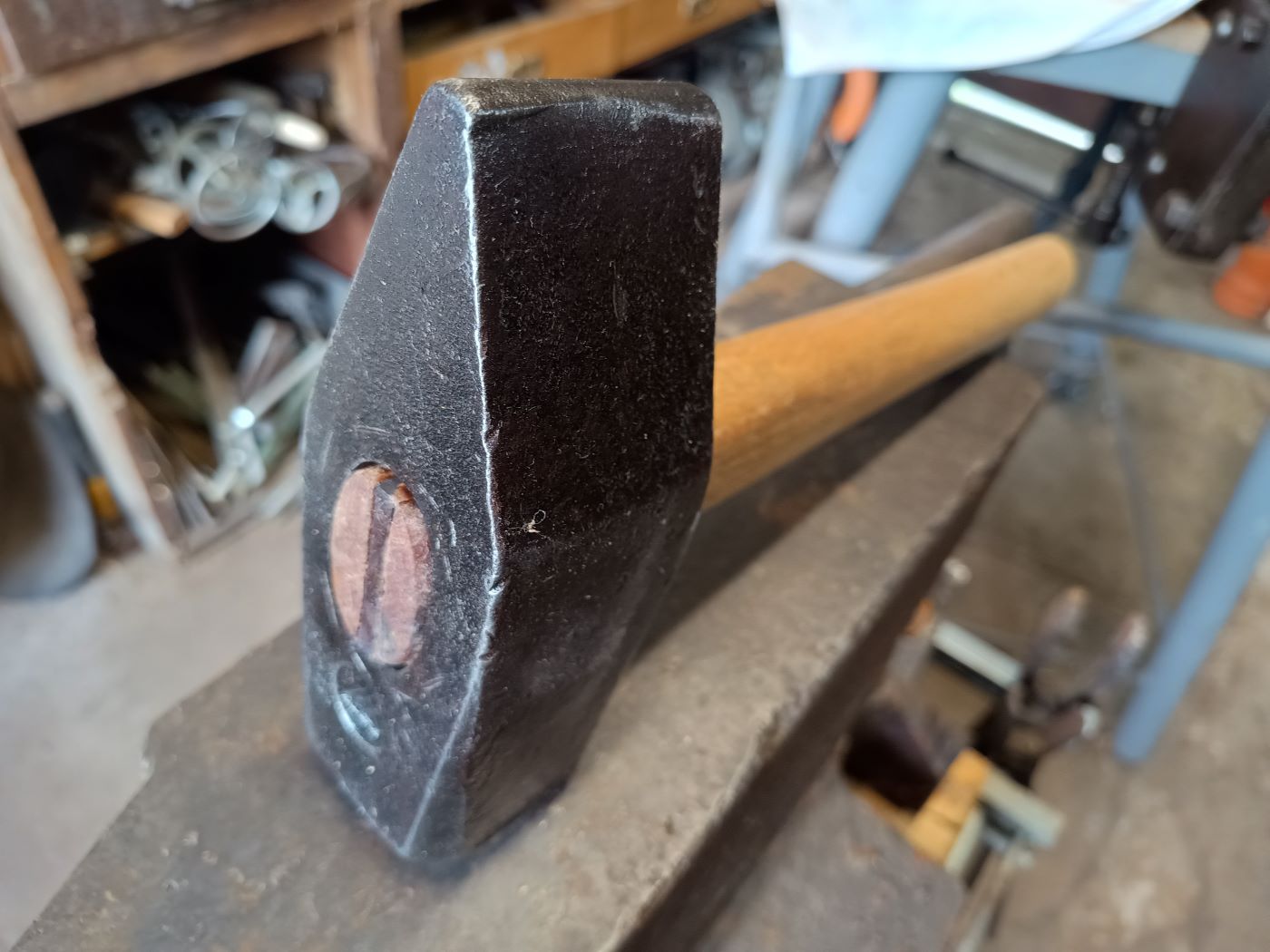 Hammerkopf, Stielholz und Werkzeug sind Flohmarktfunde.