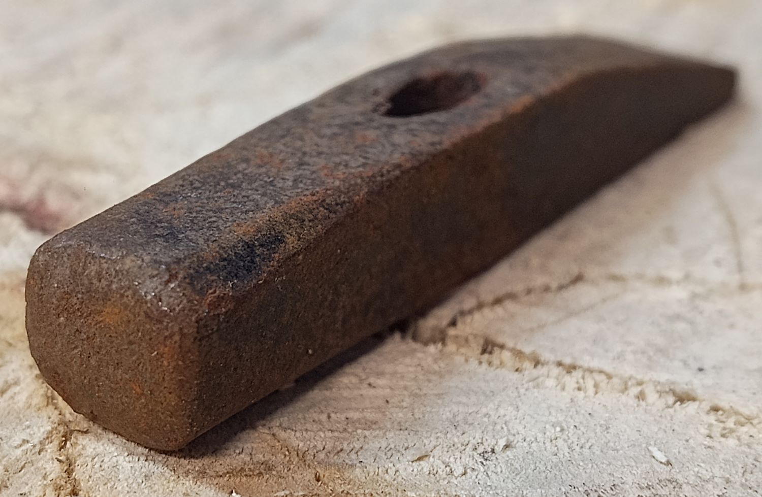 ein kleiner Dekorationshammer, genannt „Flohpeitschle“, 70 g, mit etwas ungewöhnlicher seitlicher Gußnaht. Es gibt noch kleinere für Juweliere und Uhrmacher, die ohne diese Nähte auskommen.
