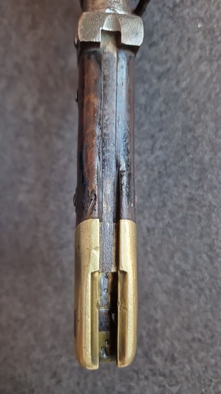 Vielen Dank für die Antwort: Das finde ich auch bemerkenswert, dass der Drücker abgefräst und wahrscheinlich auch mit Absicht unbeweglich gemacht wurde. Aber so eine "Umwidmung" hat man mit verschiedenen Variationen zum Beispiel auch am Chassepot-Seitengewehr ebenfalls vorgenommen.