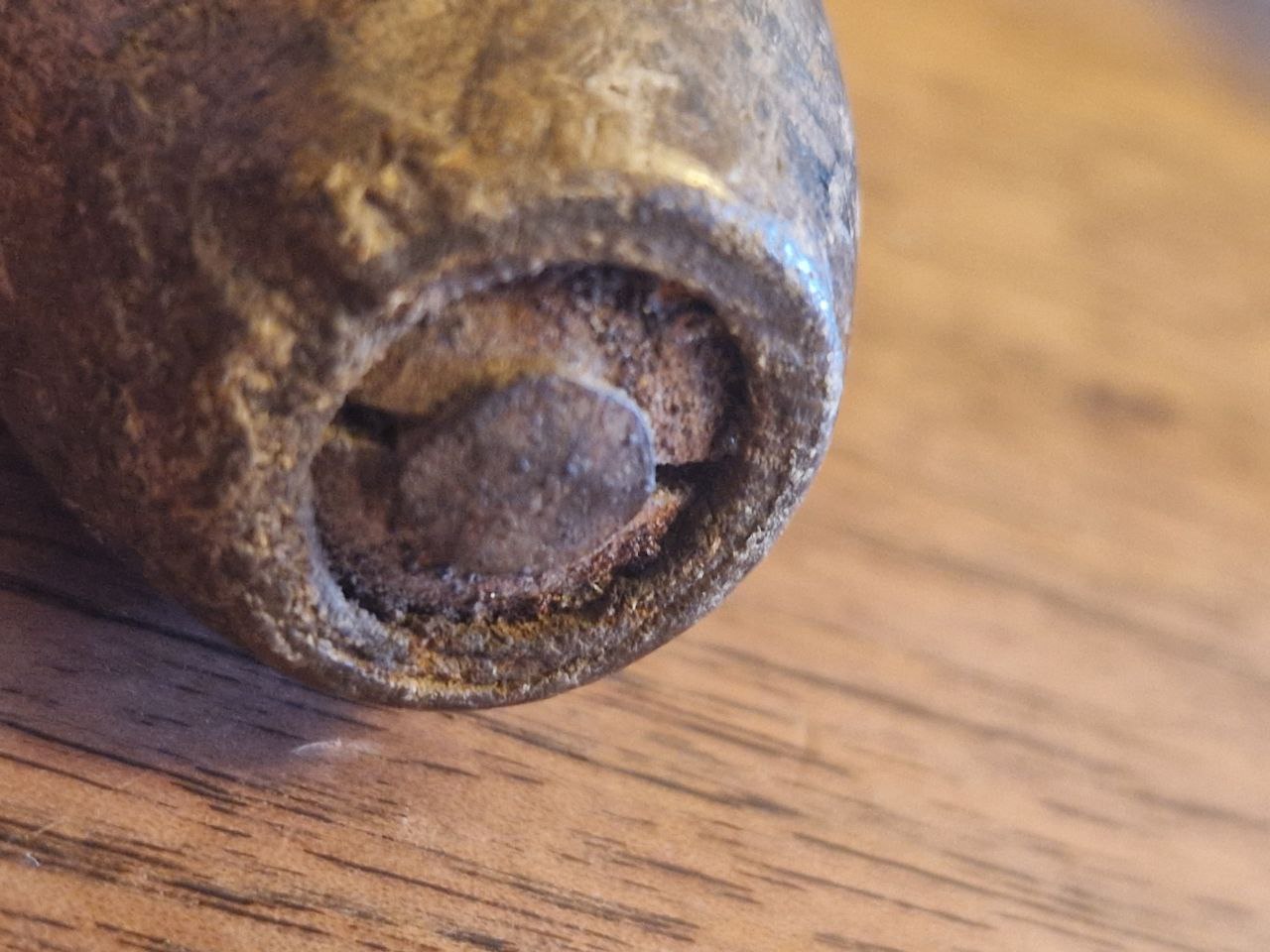 Bild 4: Schmiedemarke? Möglich "SN": es scheint der erste Schlag daneben gegangen zu sein und dann wurde halt anscheinend nochmal "richtig" draufgezimmert. Ein witziges Stück.