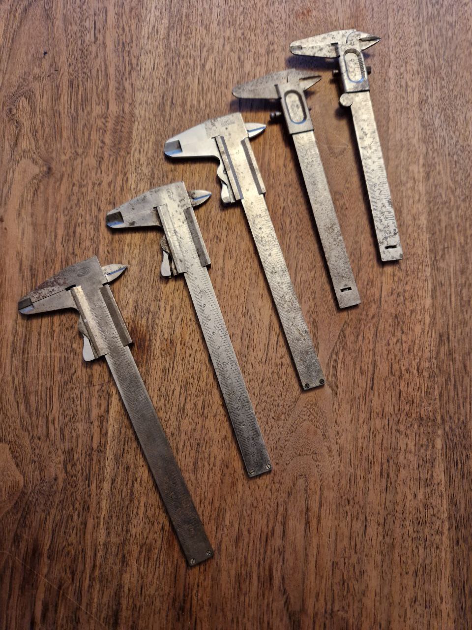 Es sind nicht alle, die ich hier nachfolgend zeige. Es befindet sich noch einer aus Plastik und irgendwo noch ein digitaler Messchieber in meinem Besitz.