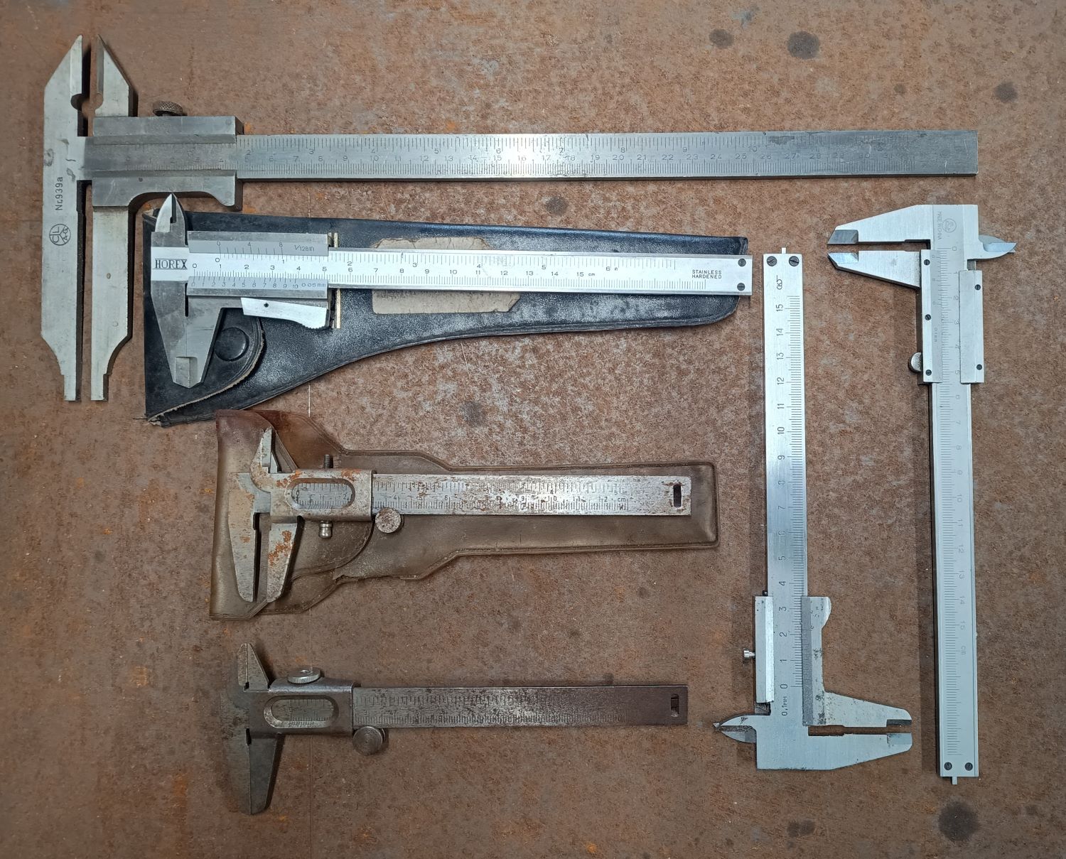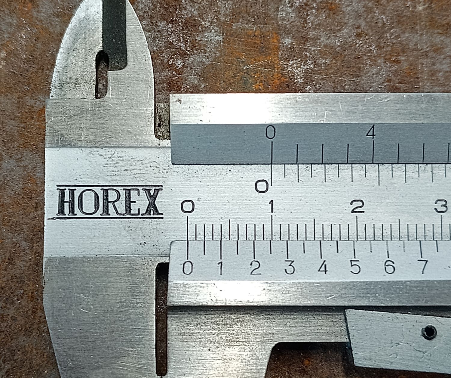 Sehr gut wird auch der mit HOREX beschriftete Messschieber sein, da er einen Momentfeststeller bzw. Momentklemmung hat. Da kann man sich sicher sein, dass sich das Messergebnis nicht verstellt, wenn man ihn vom Werkstück weg nimmt.