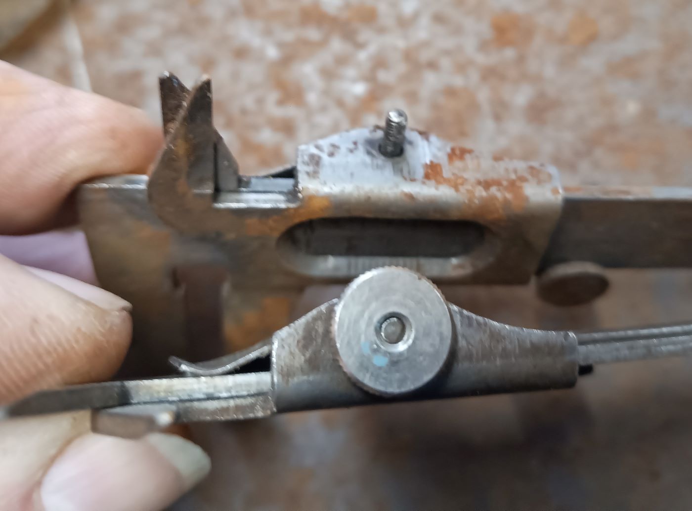 Diese beiden schrottigen Messschieber verorte ich mal in die DDR als Herkunftsland. Der mit der Aufbewahrungstasche stammt auch von Wilfried. Den anderen habe ich im Werkzeugkasten meiner Ölheizung zu liegen um die Brennerdüse einzustellen. Wichtig sind die Maße vom Abstand der Düse zur Stauscheibe und der Abstand der Zündelektroden zur Düse und voneinander. Ja, ich war auch mal im Sanitär- und Heizungsbau tätig und warte meine Heizung von Anfang an selbst. Ich habe die komplette Anlage 1996 auch selbst eingebaut. :D