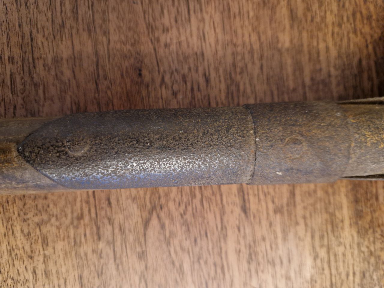 Die Tage bei einem Bekannten im Gartengeräteschuppen nach einem Schäufelchen gesucht um Frühlingsblüherzwiebeln einzugraben und gefunden: Einen Feldspaten M1898! Den habe ich gleich mal fotografiert und er hat sogar noch einen Herstellerstempel!