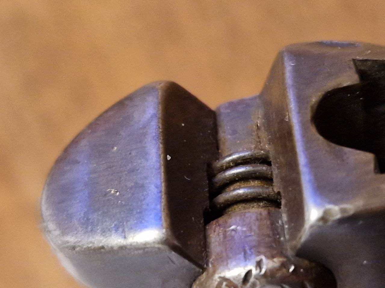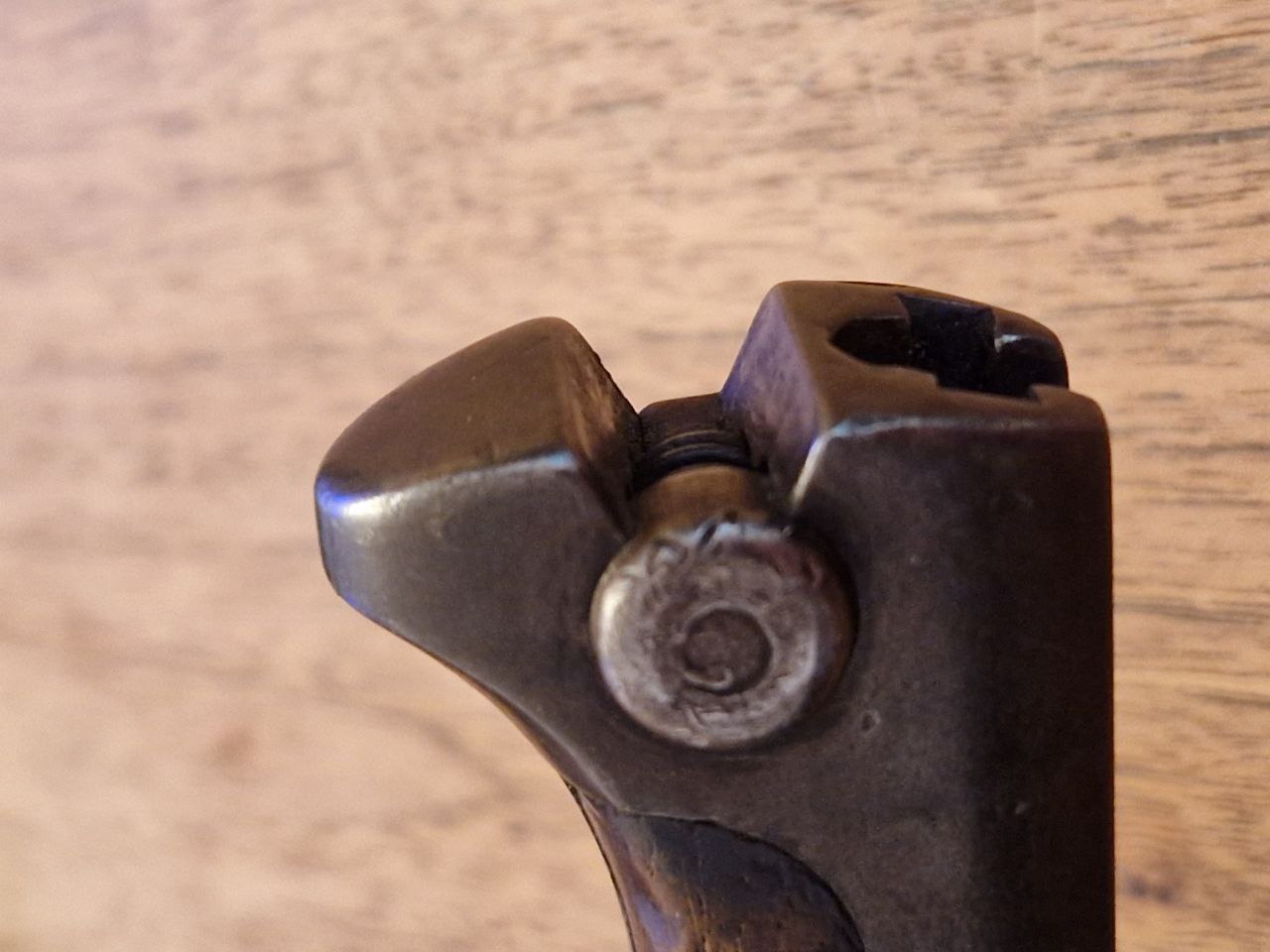Diese einkaerbung am sicherungbolzen machte es nicht unbrauchbar oder nicht aufpflanzbar auf dem Gewehr.Ist wohl funktionsfaehig.