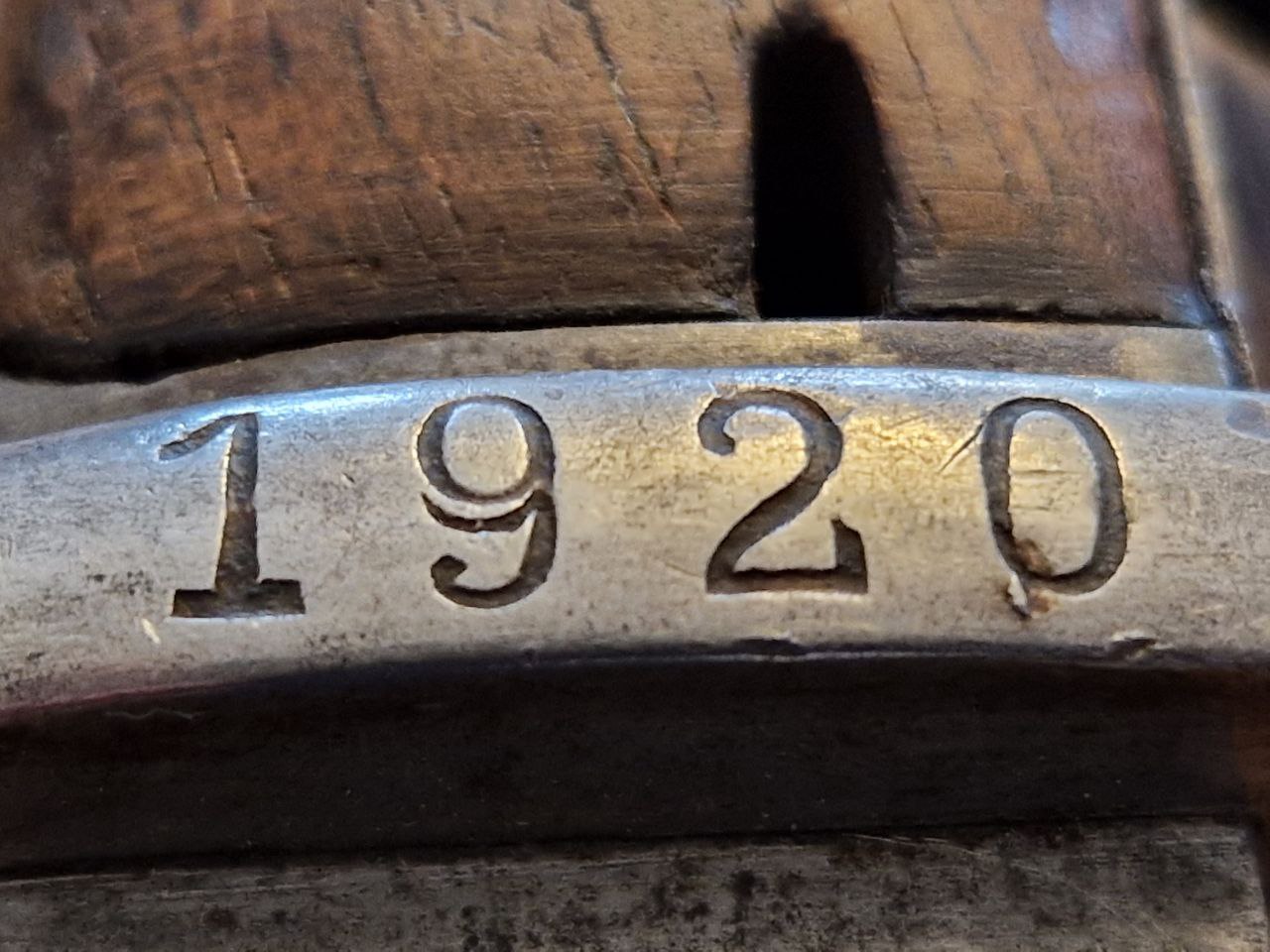 Also nach dieser Quelle wurden nach meinen Verständnis zuerst der 1920 Stempel angebracht und dann bei der Zuweisung zur Polizei die V-Kerbe eingefügt. Im obigen Absatz genannten Werk ist auch auf Seite 55 unter Nr. 66 ein Seitengewehr 98/05 abgebildet mit 1920 Stempel und V-Kerbe.