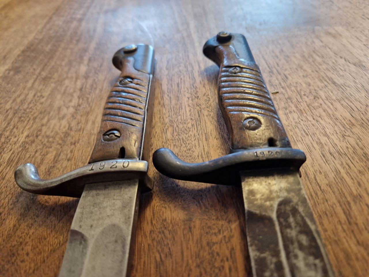 Die Interalliierte Militär-Kontroll-Kommission stellte zum 1. Februar 1927 ihre Arbeit ein .Danach wurde das Seitengewehr reaptiert , somit wieder aufpflanzbar . Hier gibt es mehrere Beispiele für Seitengewehre mit dieser Reaptierung und auch Seitengewehre wo wieder ein Stück in den Griffkopf eingesetzt wurde .