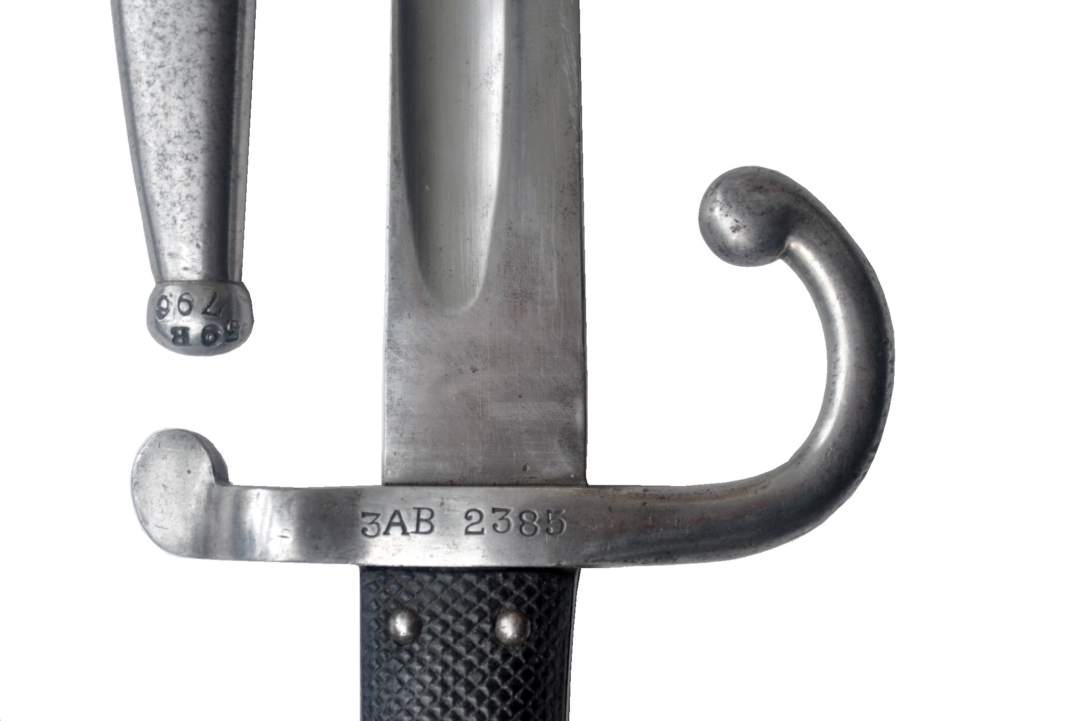 Parierstange links Waffennummer 4158, auf dem Haken Truppenstempel
