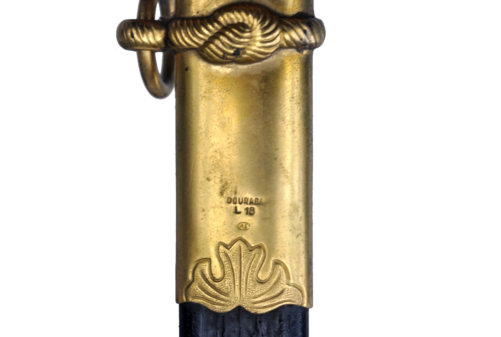 rückseitig auf der Scheide DOURADA L18 (vergoldet 18k) und AE im Oval