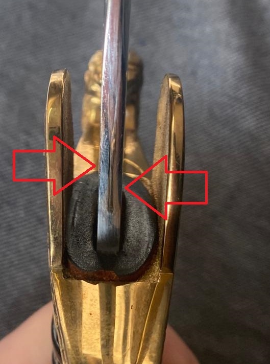 Stossleder ist alt, Messingfarbe sieht ok aus, nicht wie am neuzeitlichen replikas.
