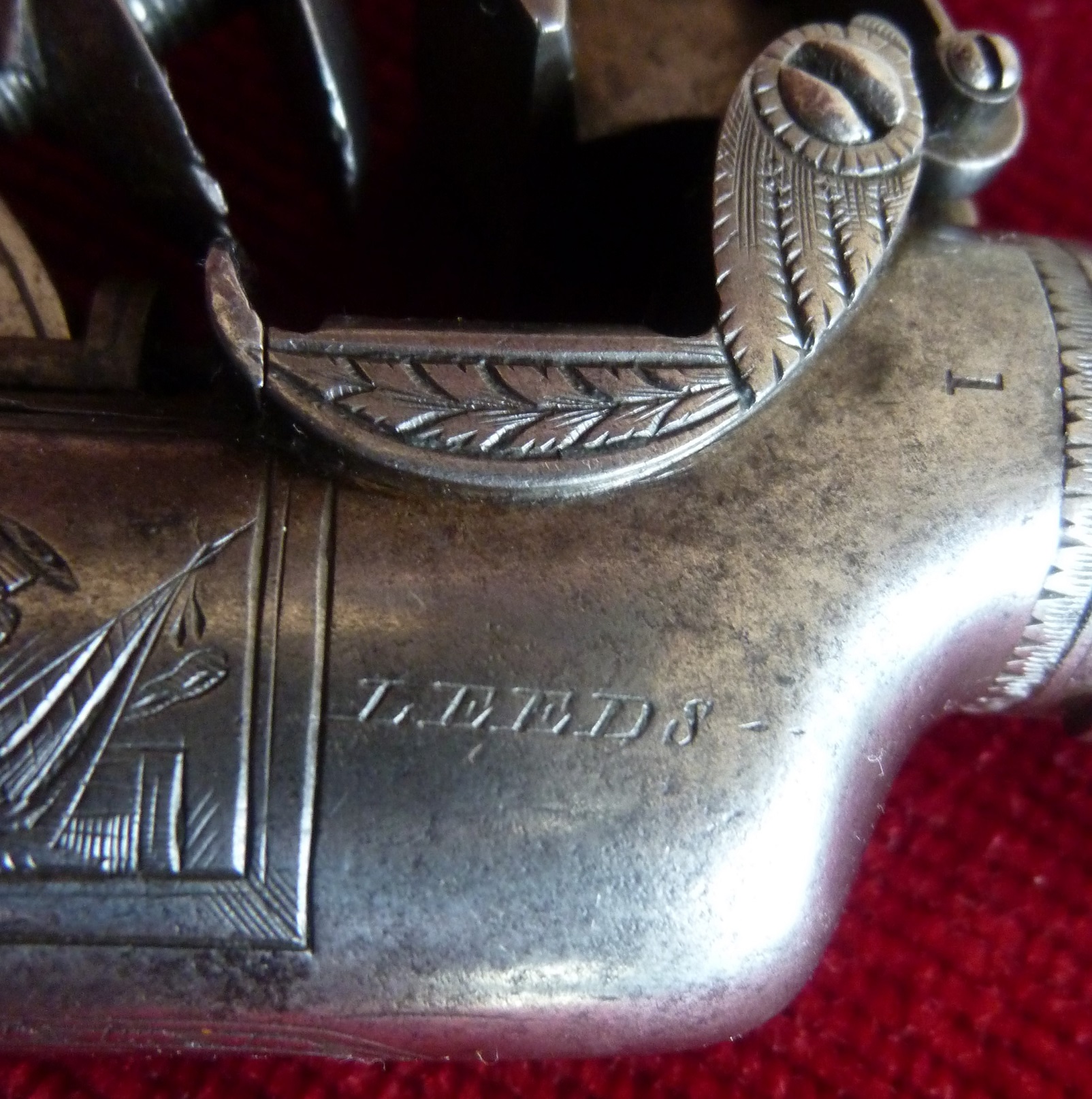 Ich möchte ein ungewöhnliches Paar Boxlockpistolen aus Leeds vorstellen. Herstellungszeitraum etwa um 1820. (Birmingham-Marke ab 1813)