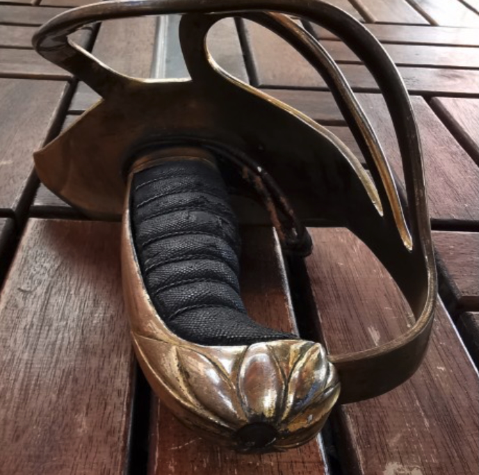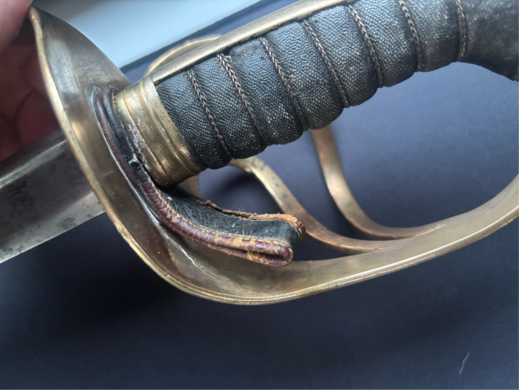 M.E. ist das kein preußischer Säbel für berittene Infanterieoffiziere. Das Gefäß scheint mir auf den Fotos aus Messing, oder täuscht das?
