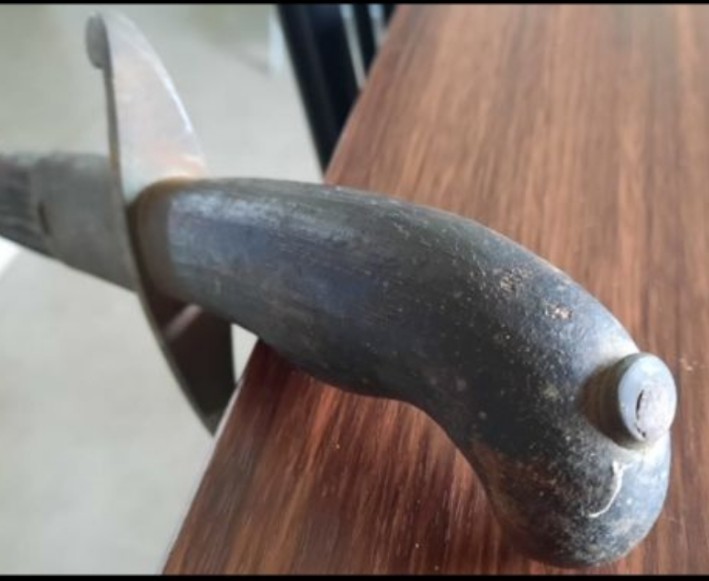 Heute stelle ich Ihnen den „Hirschfänger“ vor, der auf demselben elsässischen Dachboden lag wie der kleine Polizeisäbel …