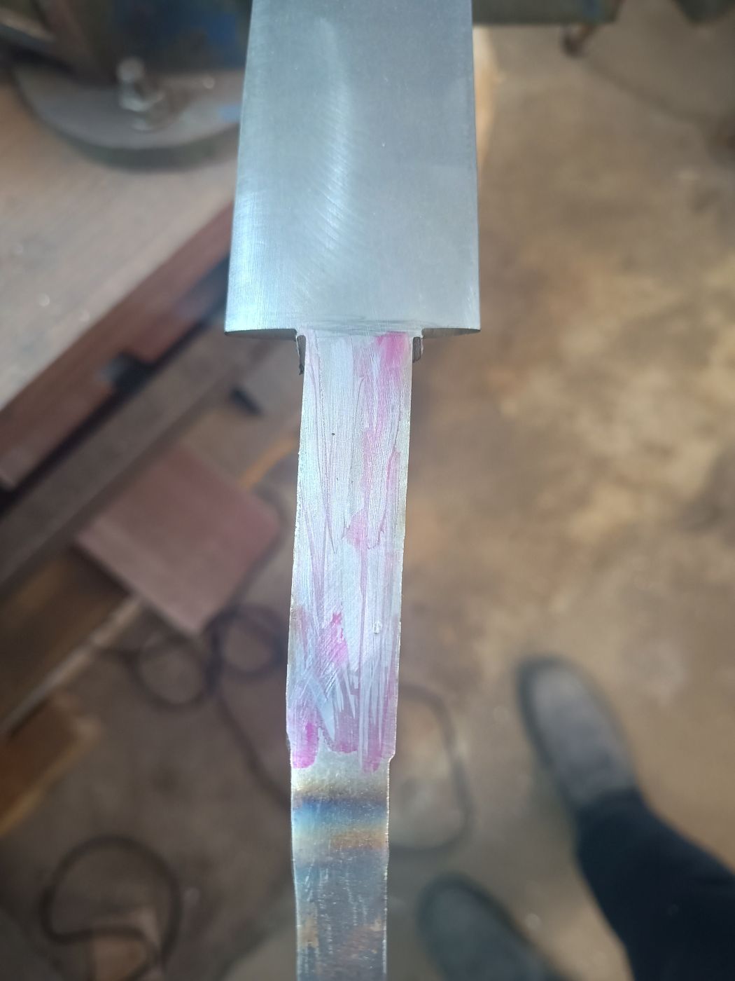 ich nicht erwartete. Zum Glück lag die Maximalbreite der Klinge an der Stelle, die den jetzigen Klingenort markiert.