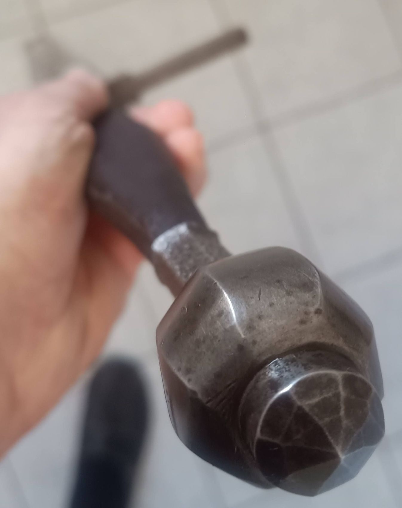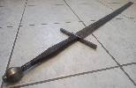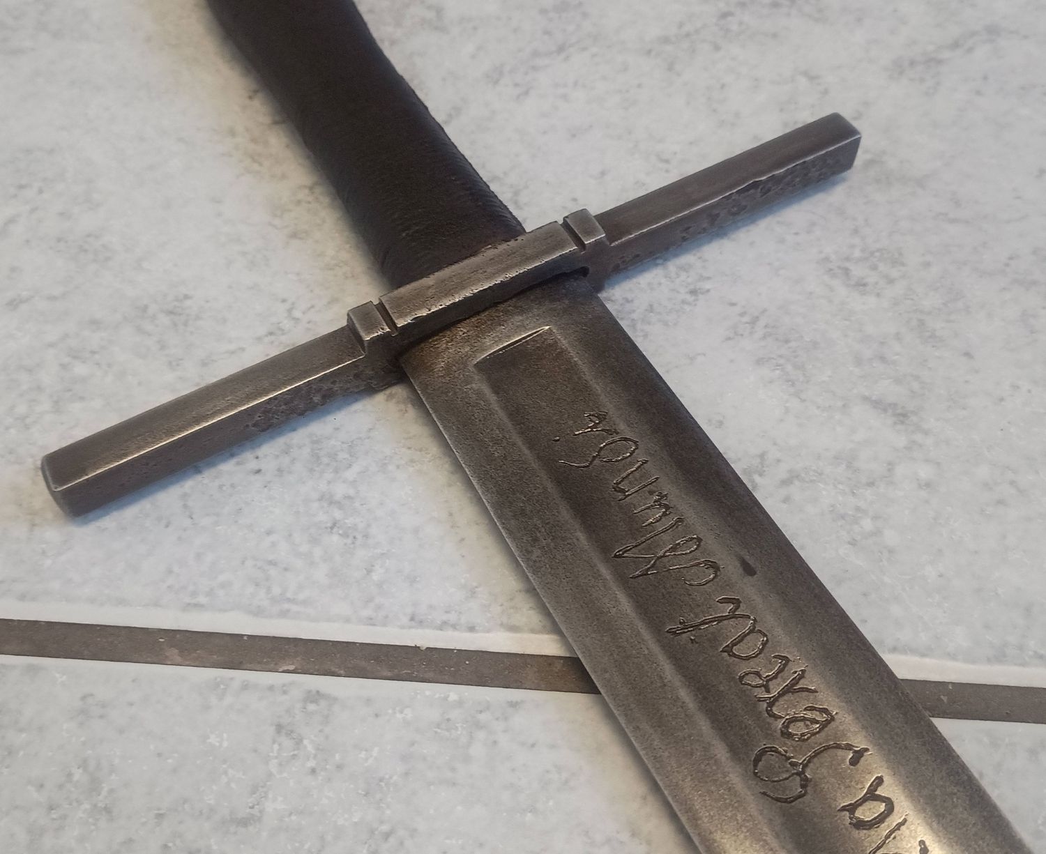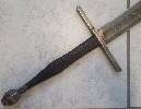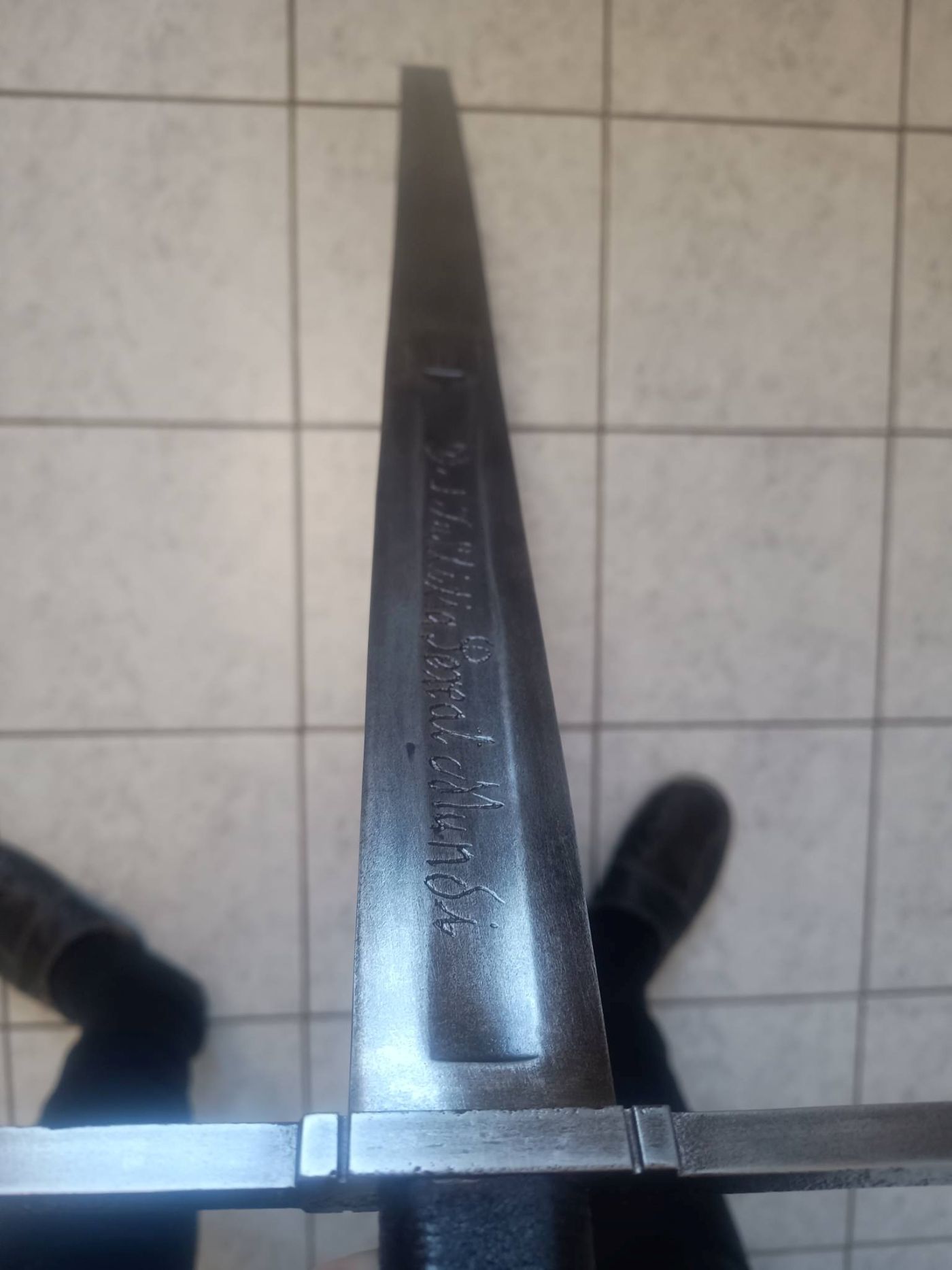 Aus mir unbekannten Gründen hat das Schwert im Ständer neben anderen Schwertern weiter vor sich hin gerostet. Habe wohl vergessen Öl drauf zu machen?! Da muss man aufpassen, denn Rost ist wie Grippe, der kann nebenstehende Gegenstände aus Stahl und Eisen anstecken.