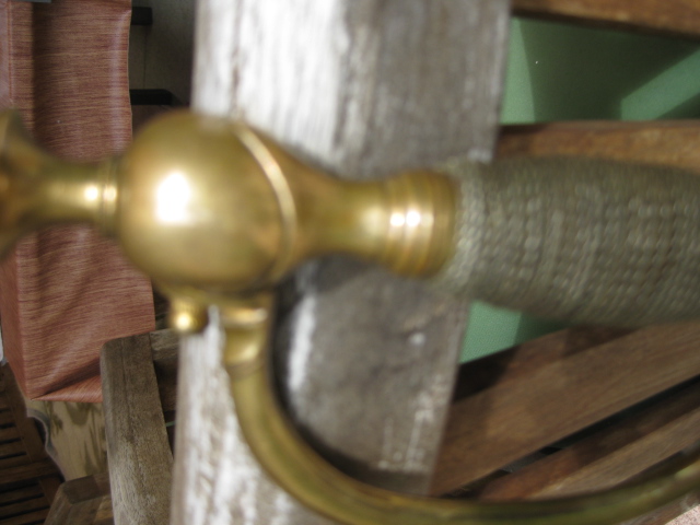 Zur Aussage "späte Form": Sicherlich ist der Aufbau der Scheide mit den preußischen Degen der Jahrhundertwende identisch. Die alten Grundmodelle des M 1818 weisen oben und unten einen separaten Griffring, zweifach kaniliert auf. Auch sind die Scheidenbeschläge bei früheren Stücken grazieler und hochwertiger gefertigt. Zur Jahrhundertwende kam es dann zu Arbeitsvereinfachungen. Der Knauf wurde nunmehr mit dem Griffring produziert. Das äußere Stichblatt war nunmehr nicht mehr scharfkantig, sondern wulstig eingezogen. Beim Grundmodell des M 1818 war eine vergoldete Griffwicklung vorgegeben.Ob sich auch dies später geändert hat, kann ich nicht sagen. Dieser Degen hat eine reparierte, silberne Griffwicklung.