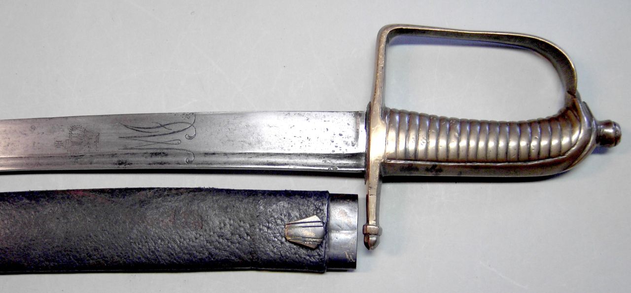 Hier der Vollständigkeit halber ein Grenadiersäbel mit kupferhaltigem Messinggefäß und Monogramm "MJ"
