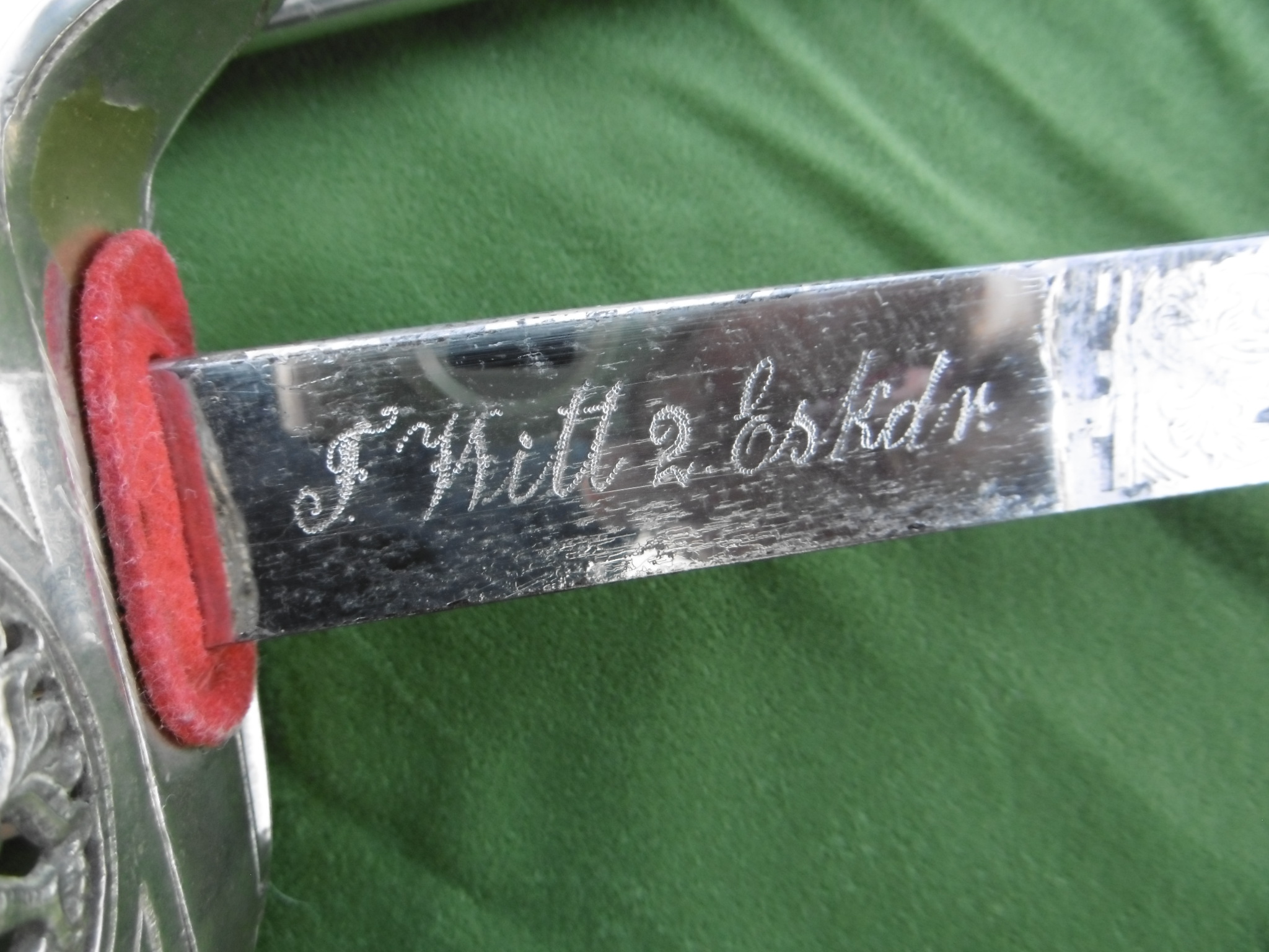 Auf dem Klingenrücken die Händlersignatur von Wilhelm Finke / Potsdam.