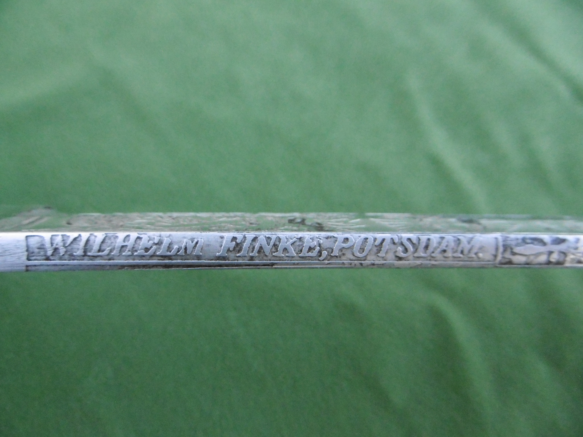 Auf dem Klingenrücken die Händlersignatur von Wilhelm Finke / Potsdam.
