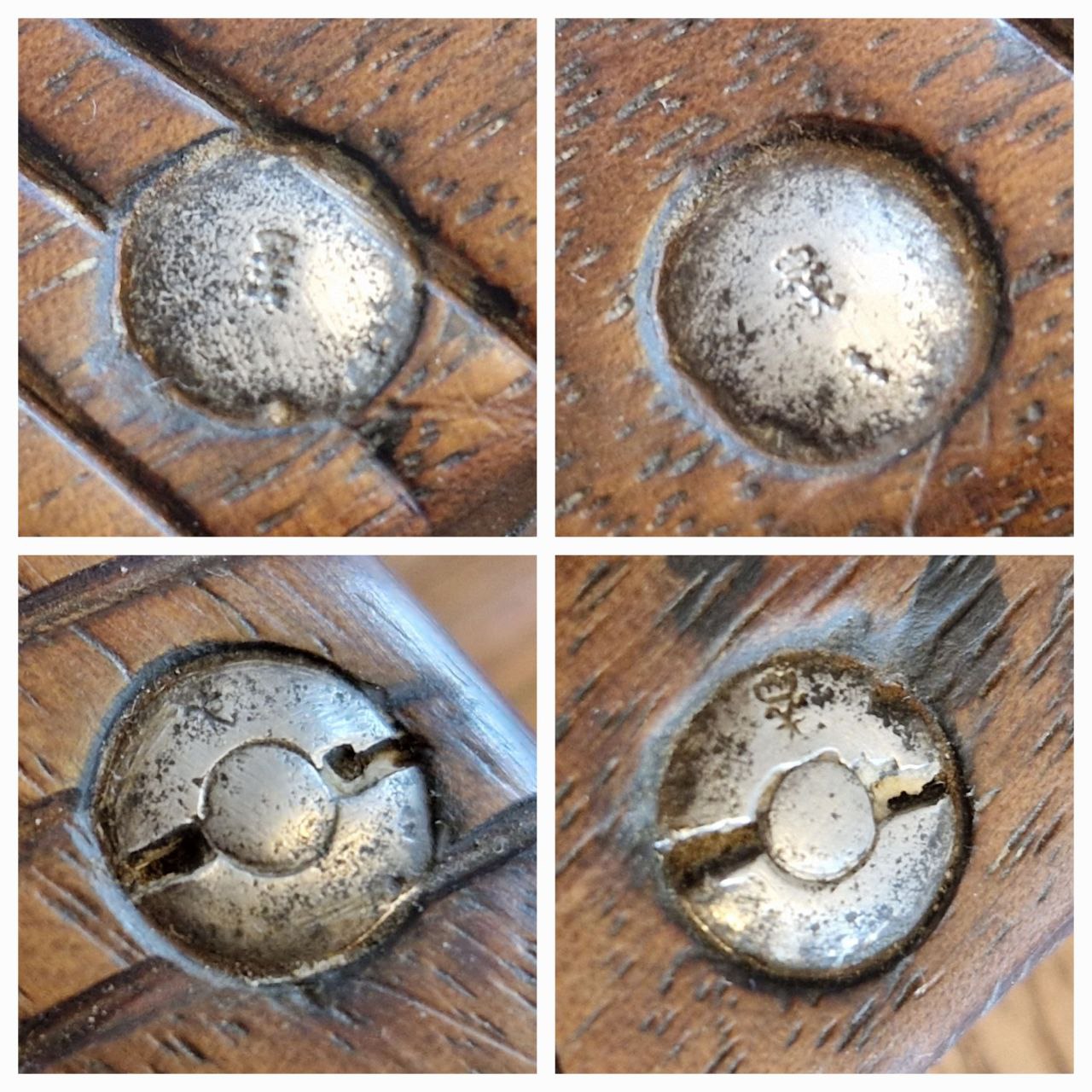 links den Abnahmestempel dieses Stückes von der Scheide, in der Mitte den