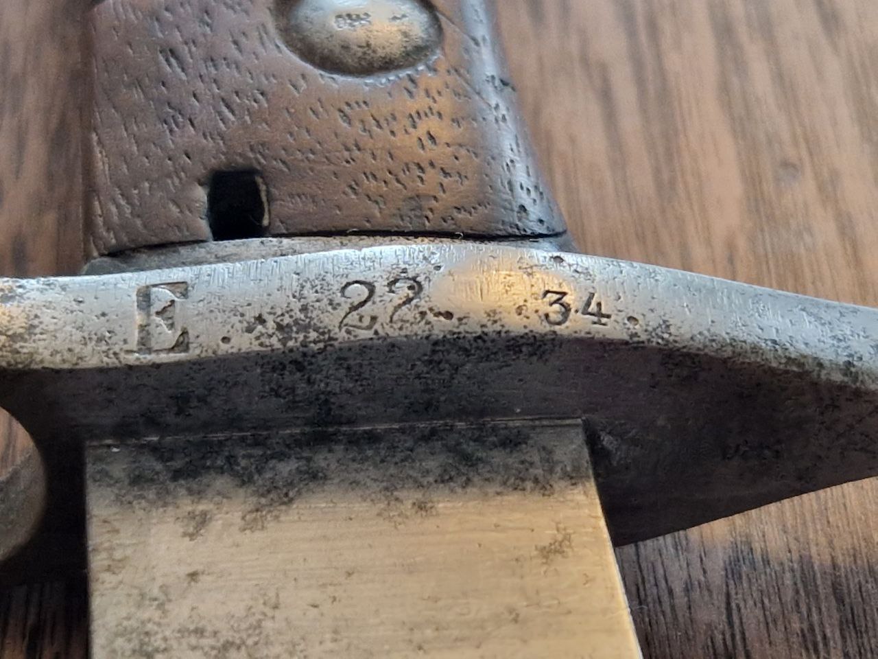 an der Scheide weicht von den Stempeln an der Waffe ab, die allerdings auch