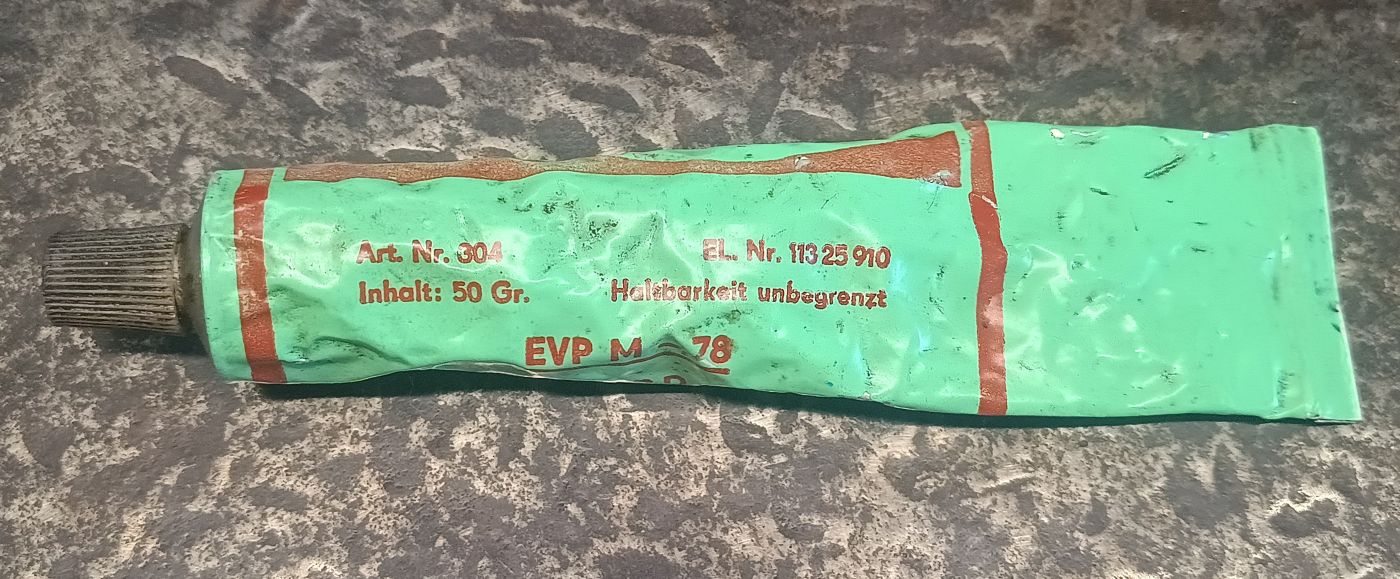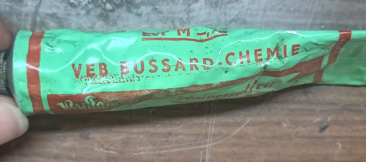 Diese Tube aus DDR-Zeit ist mir die Tage in meiner Werkstatt in die Hände gefallen. Keine Ahnung, wo ich die wieder her habe.