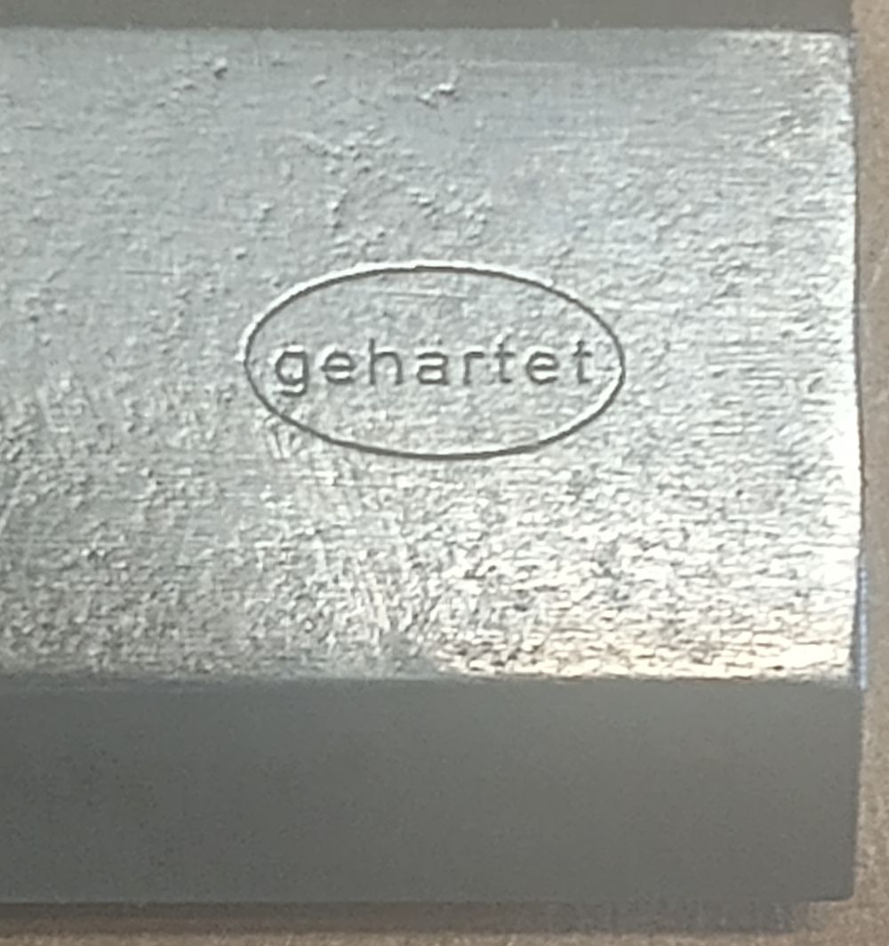 Weitere Inschrift "gehärtet", in einer ovalen Umrandung.