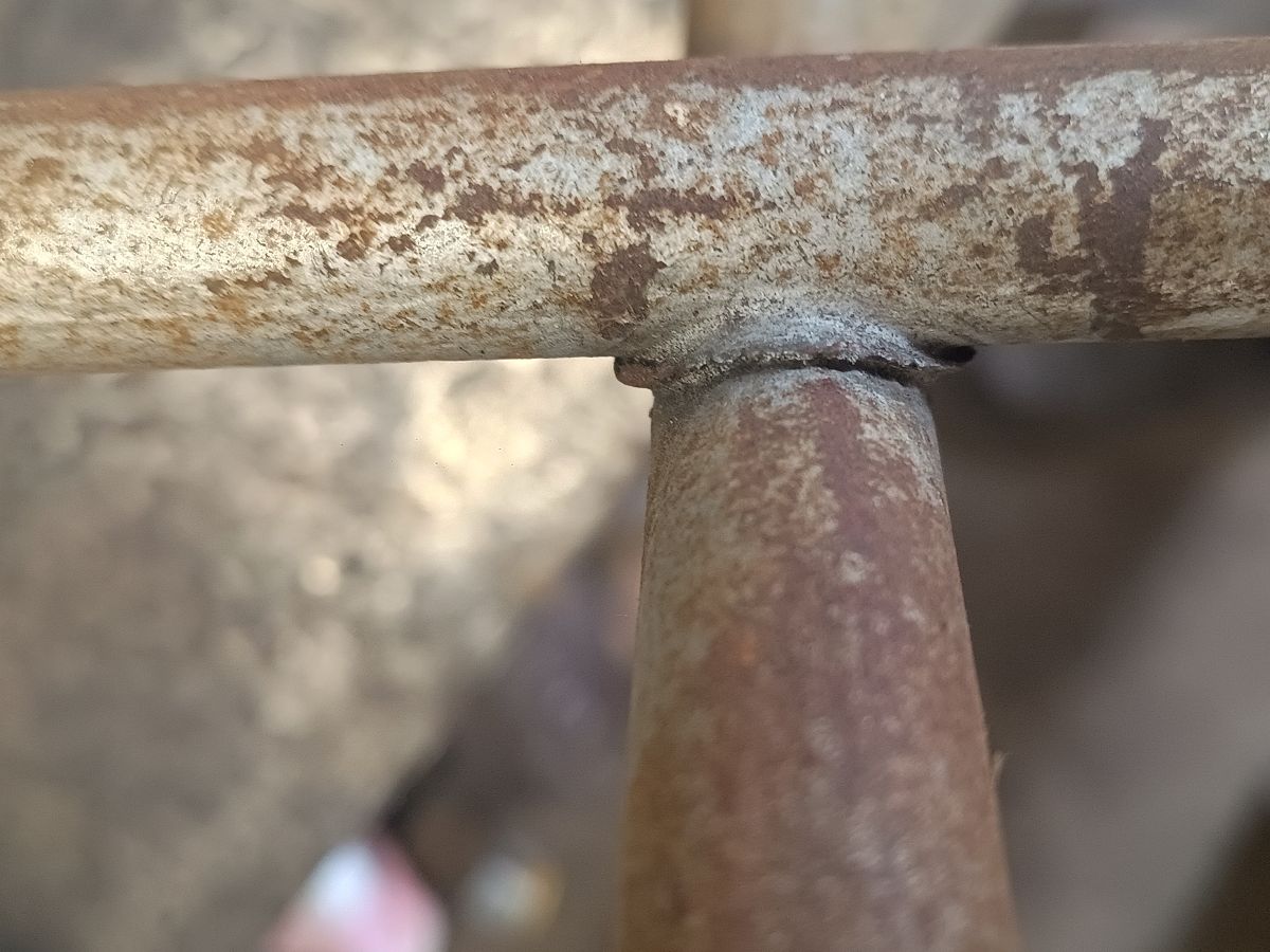Die Verbindung der Stäbe wurde m.E. mittels Reibschweißen hergestellt. Sieht merkwürdig aus, hält aber jeden Radwechsel aus.