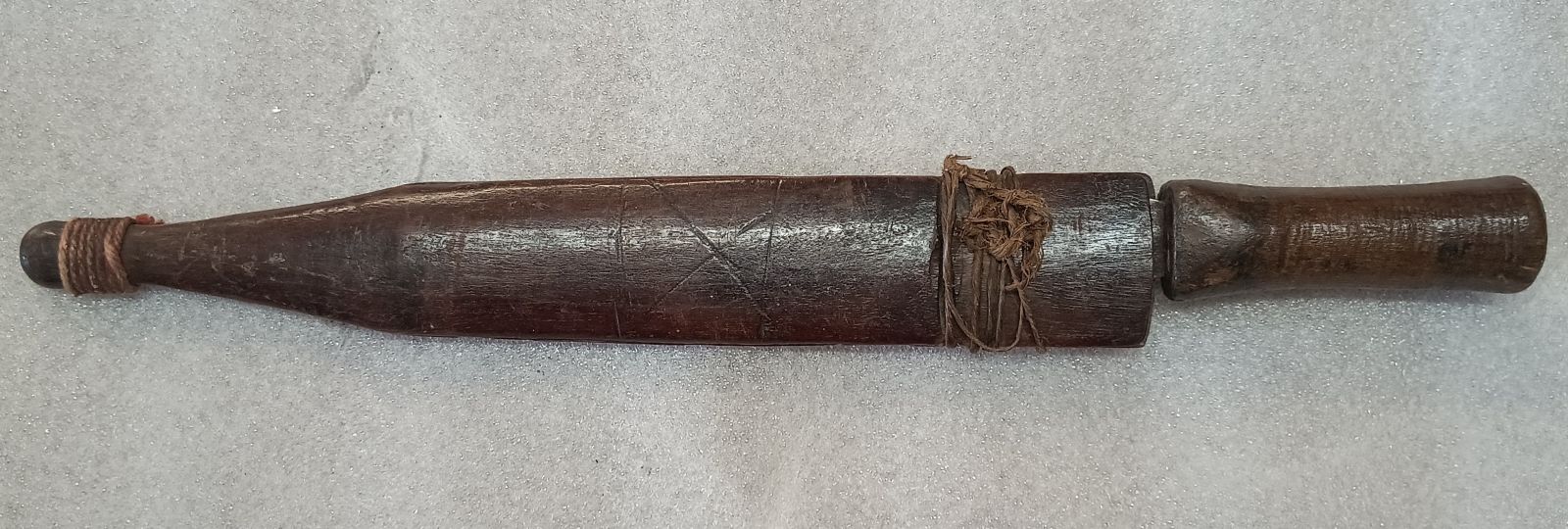 Die Hilze ist ebenfalls aus Holz, Äußerlich ohne erkennbare Angelbefestigung. Wahrscheinlich wurde die Angel eingebrannt und mit etwas unbekanntem verklebt.