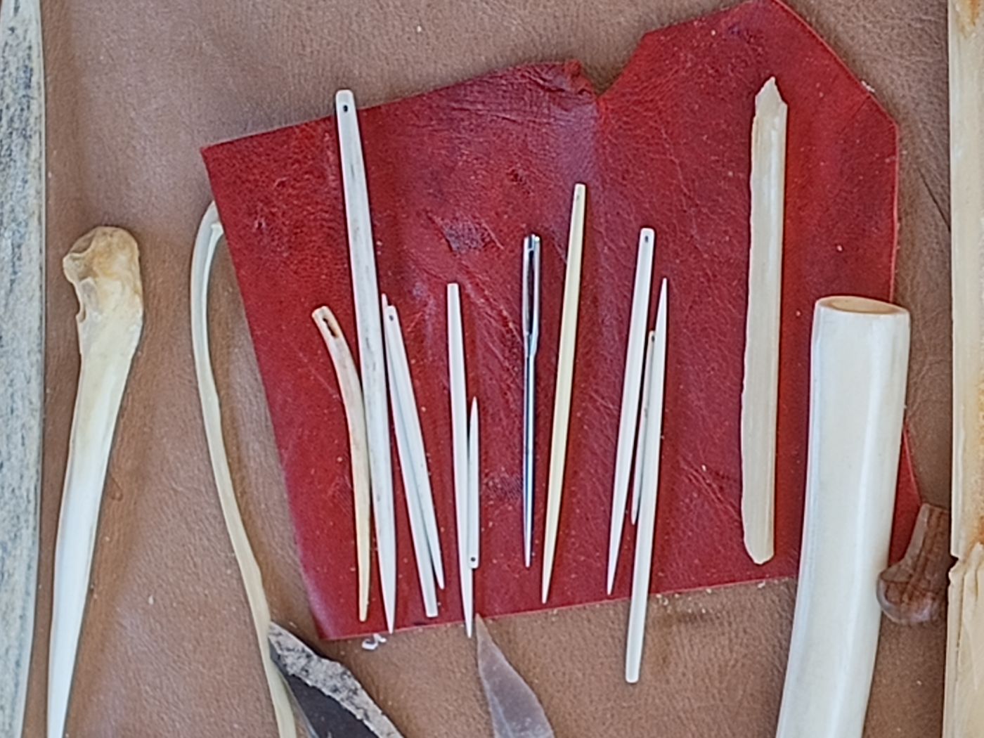 Knochen, Horn, Geweih, Holz, Federn