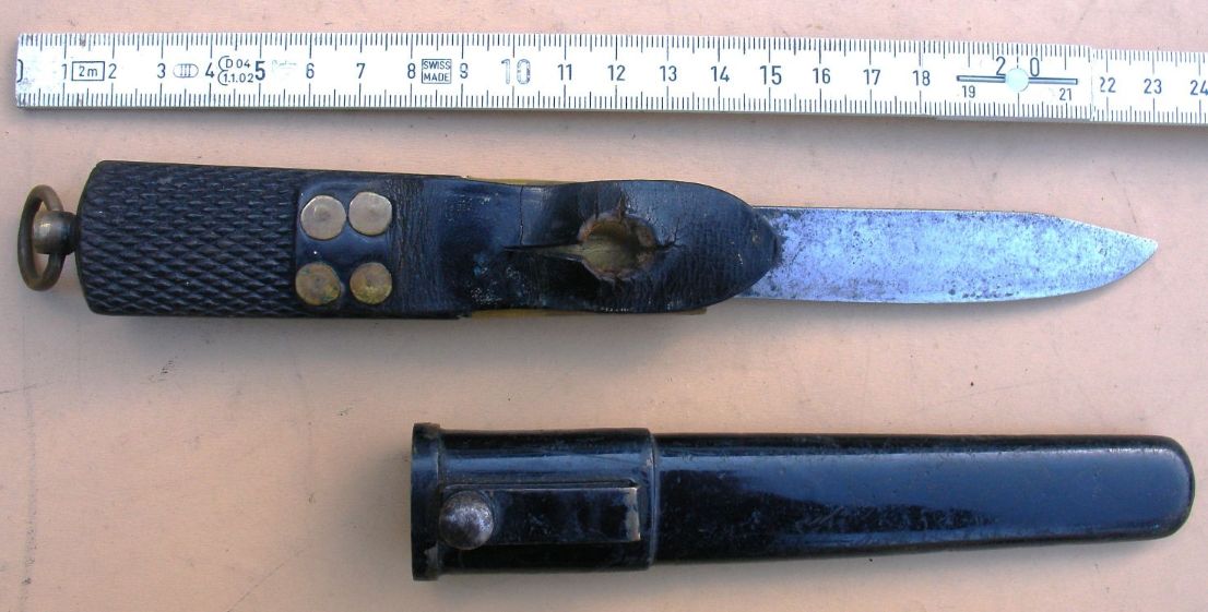 Gegen eine Verwendung als Tauchermesser spricht, daß die Scheiden unten geschlossen sind und das Wasser so schlechter ablaufen kann.