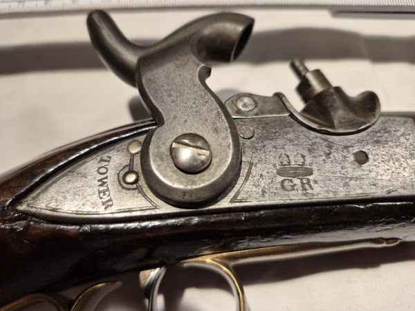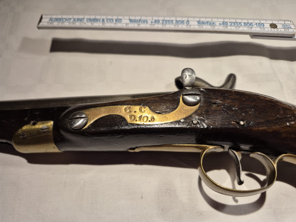 Da es sich hier um eine aptierte Version der englischen NLP-Pistole handelt, welche erst ab ca. 1843 aus der Steinschlossversion umgebaut wurde, bezieht sich der Truppenstempel natürlich auf die Garde du Corps.