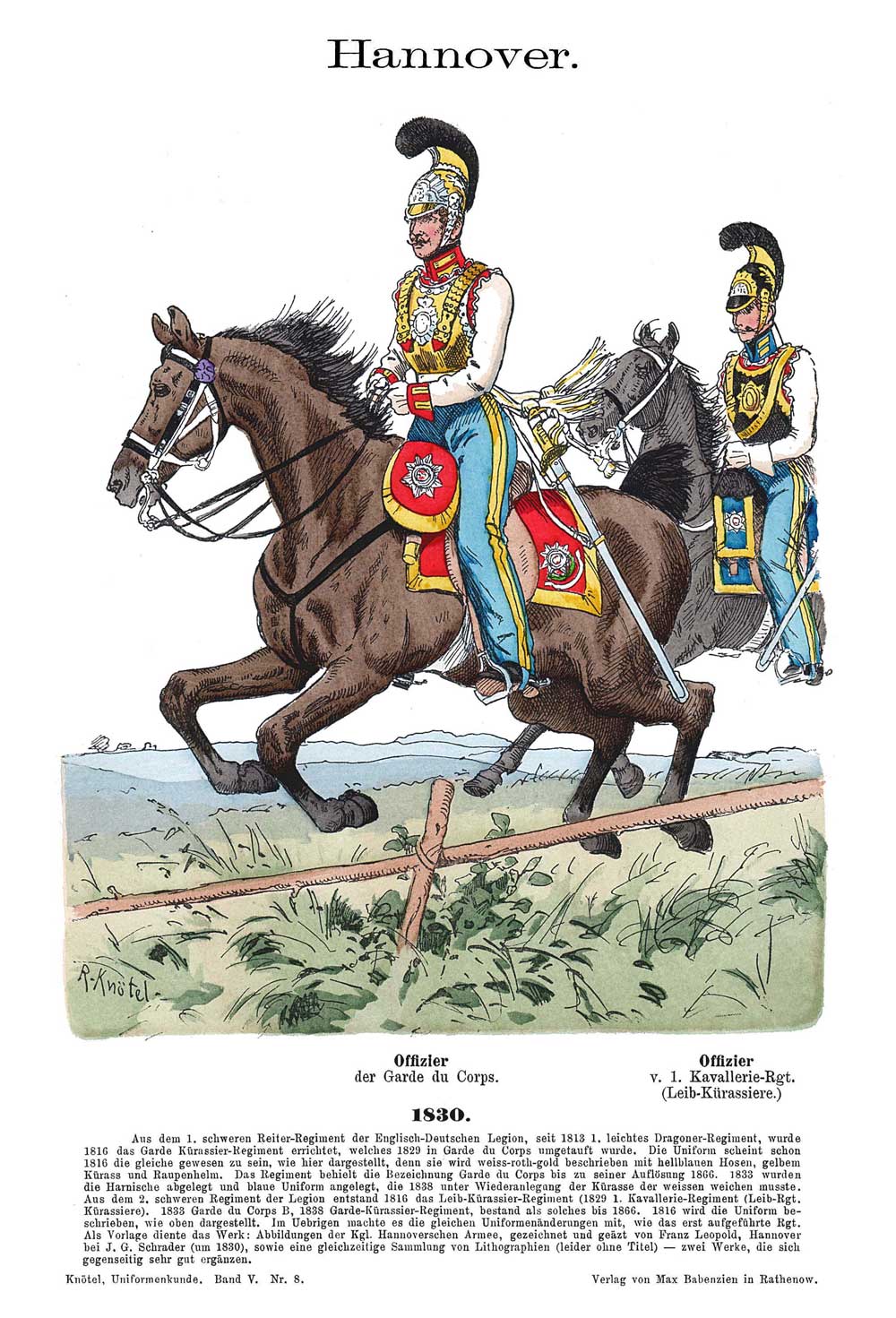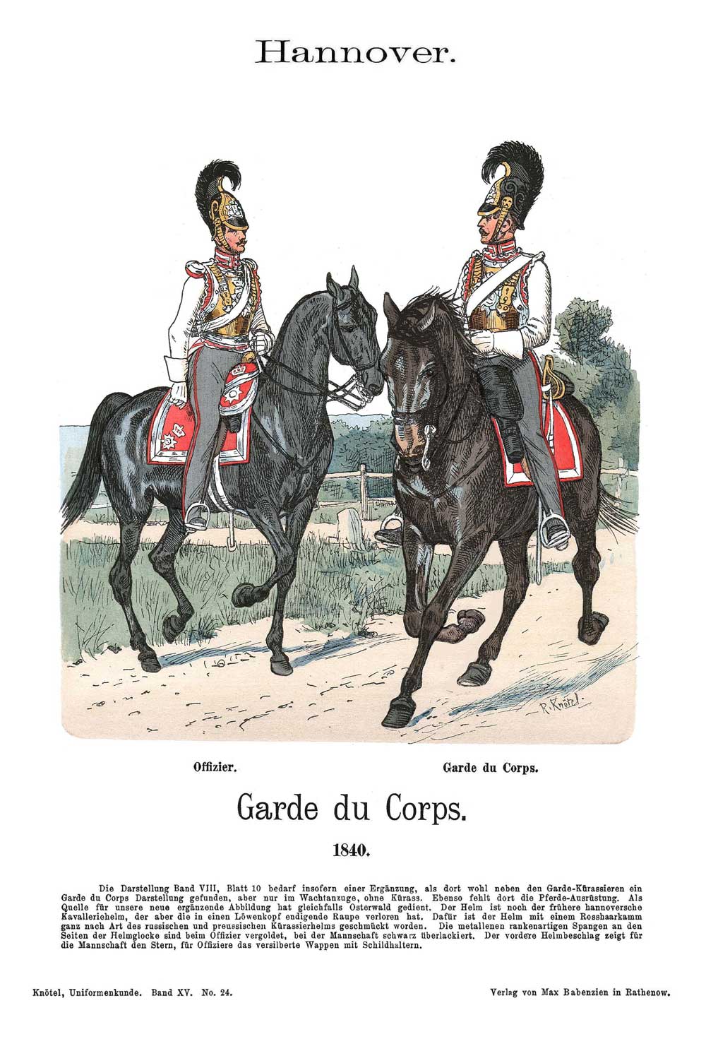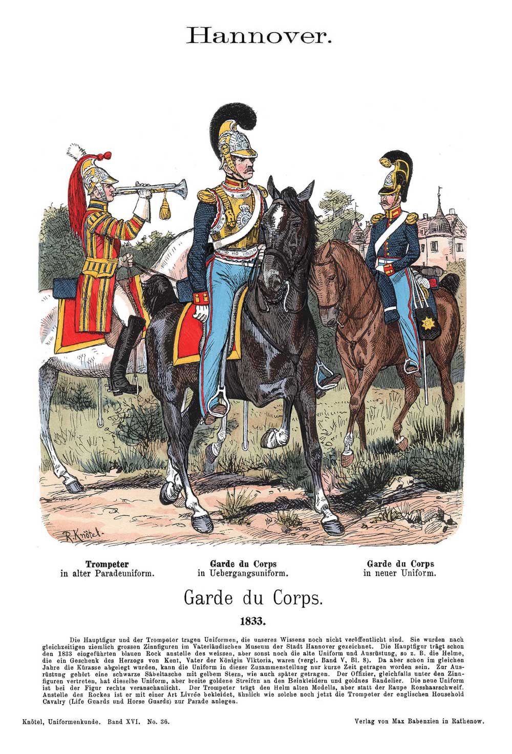 Nach der Zusammenlegung der in Hannover aufgestellten Truppen inkl. der Einheiten der King's German Legion von 1816 und 1817 gab es in Hannover bis 1829 keine Garde du Corps.
