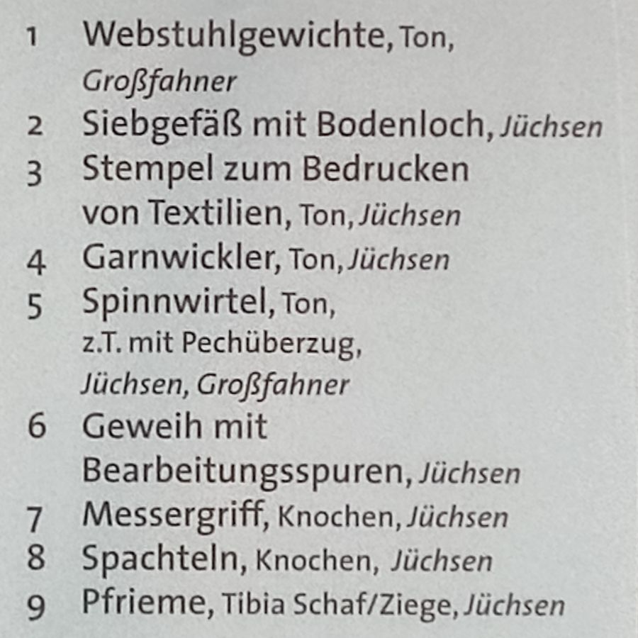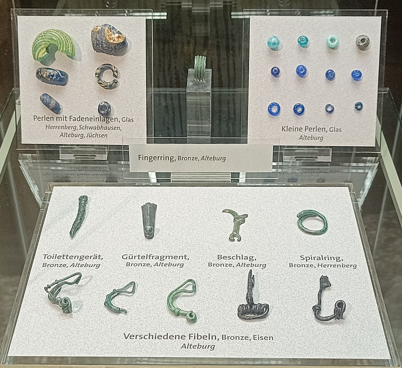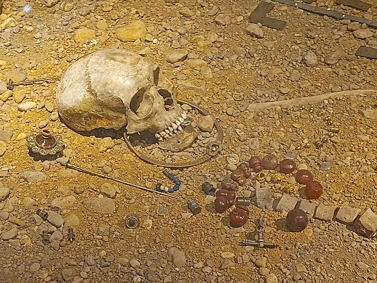 Fibeln, Schlüssel, Glas, noch mehr Fibeln, Saxe und ein wohlgeformter Frauenschädel