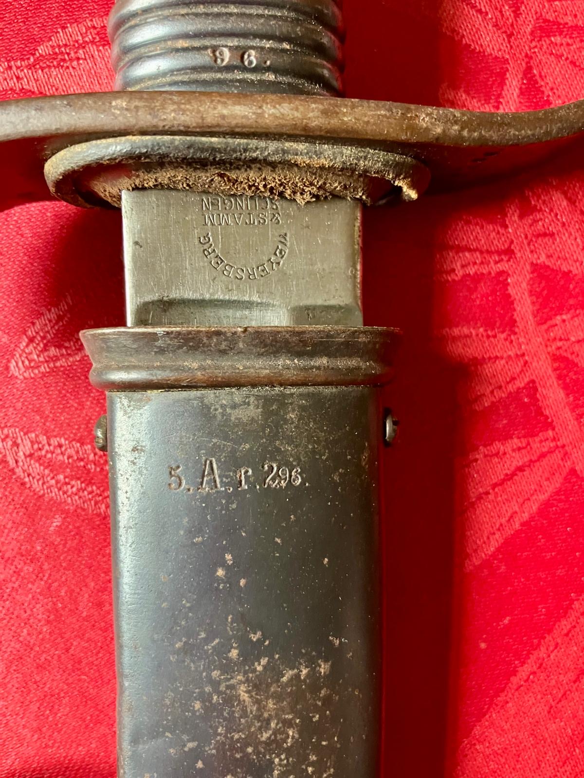Bayerischer AS (Artillerie-Säbel). Abgenommen 1888, Truppenstempel des