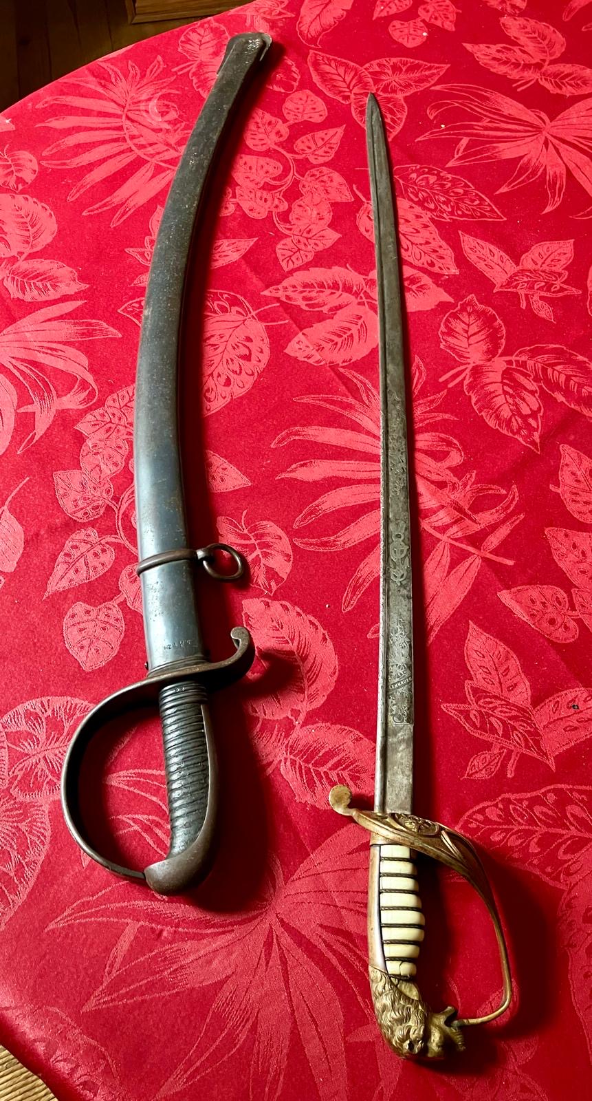 links abgebildeten Säbel (schwarze Scheide) 1918 in Landau/Pfalz „erbeutet“ habe.