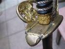Der Griff besteht aus Holz mit Zelluloidbezug und intakter Silberdrahtwicklung. Herausragend