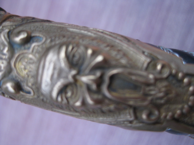 Der Griff besteht aus Holz mit Zelluloidbezug und intakter Silberdrahtwicklung. Herausragend