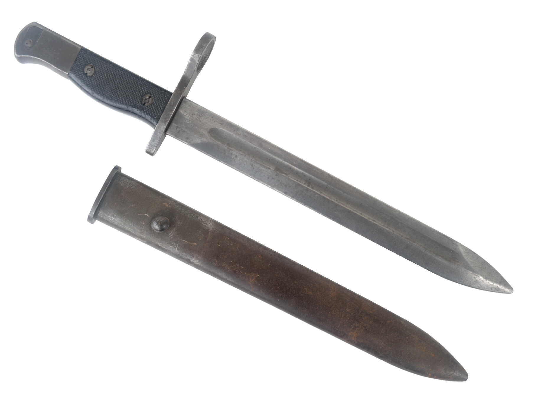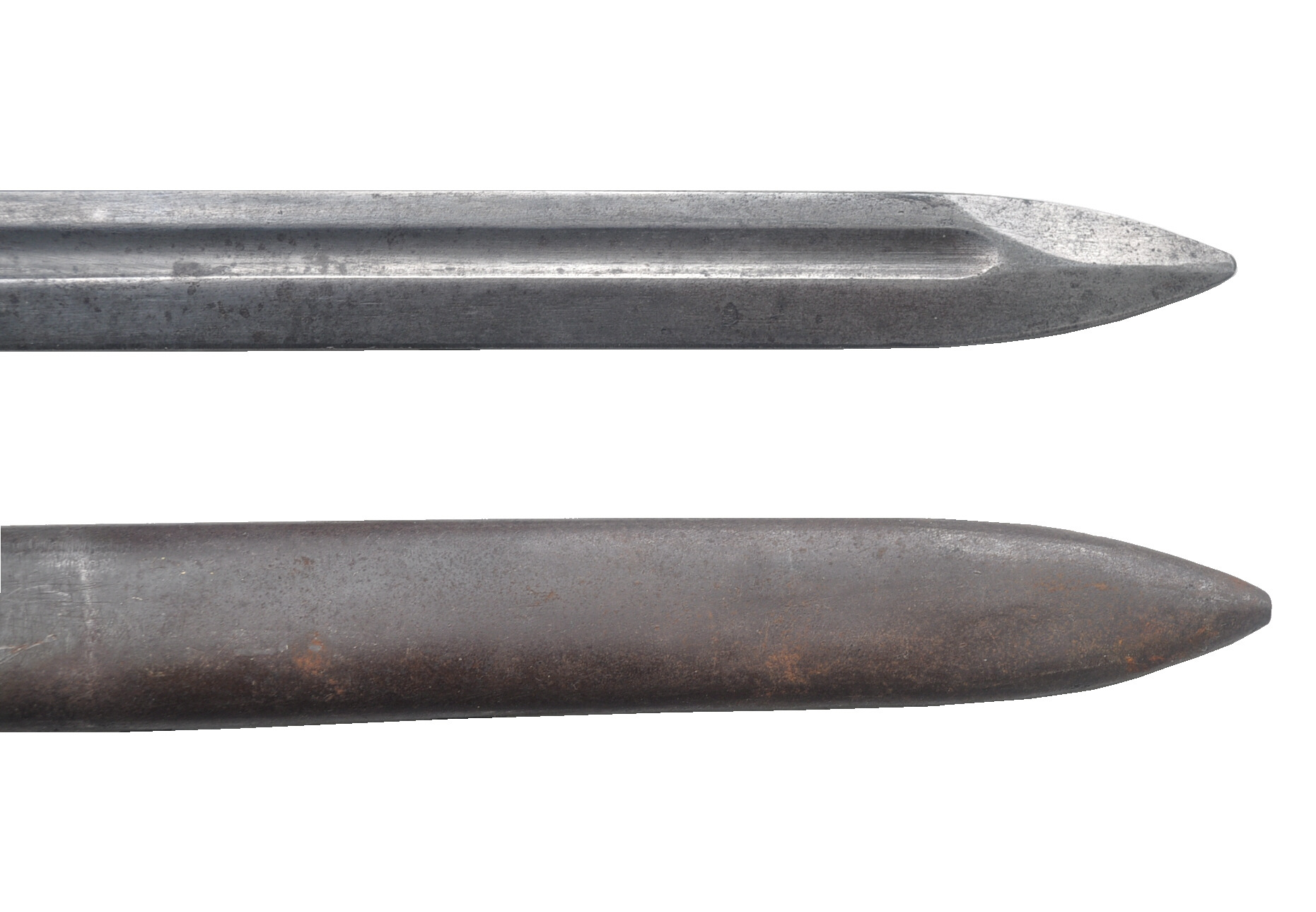 einschneidige, phosphatierte Klinge mit beidseitiger Hohlkehle, Mittelspitze