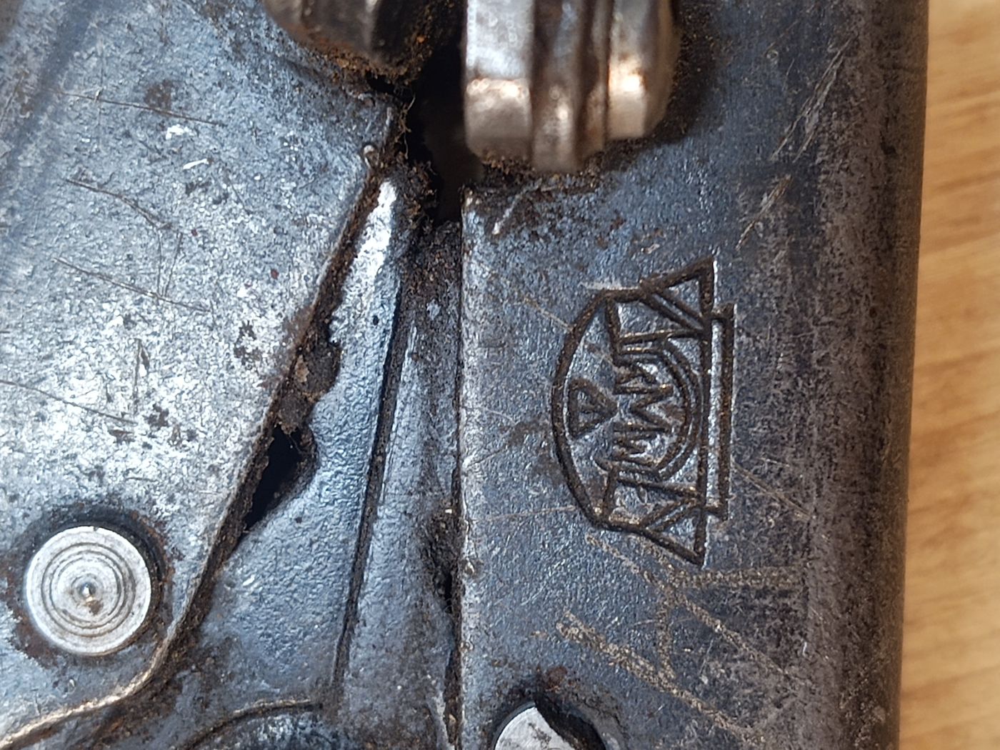 Gestempelt mit einer mir unbekannten Grafik - wohl eine Pressvorrichtung - mit den Buchstaben KMW. Darunter das DDR-Gütezeichen, die 1 im Dreieck.