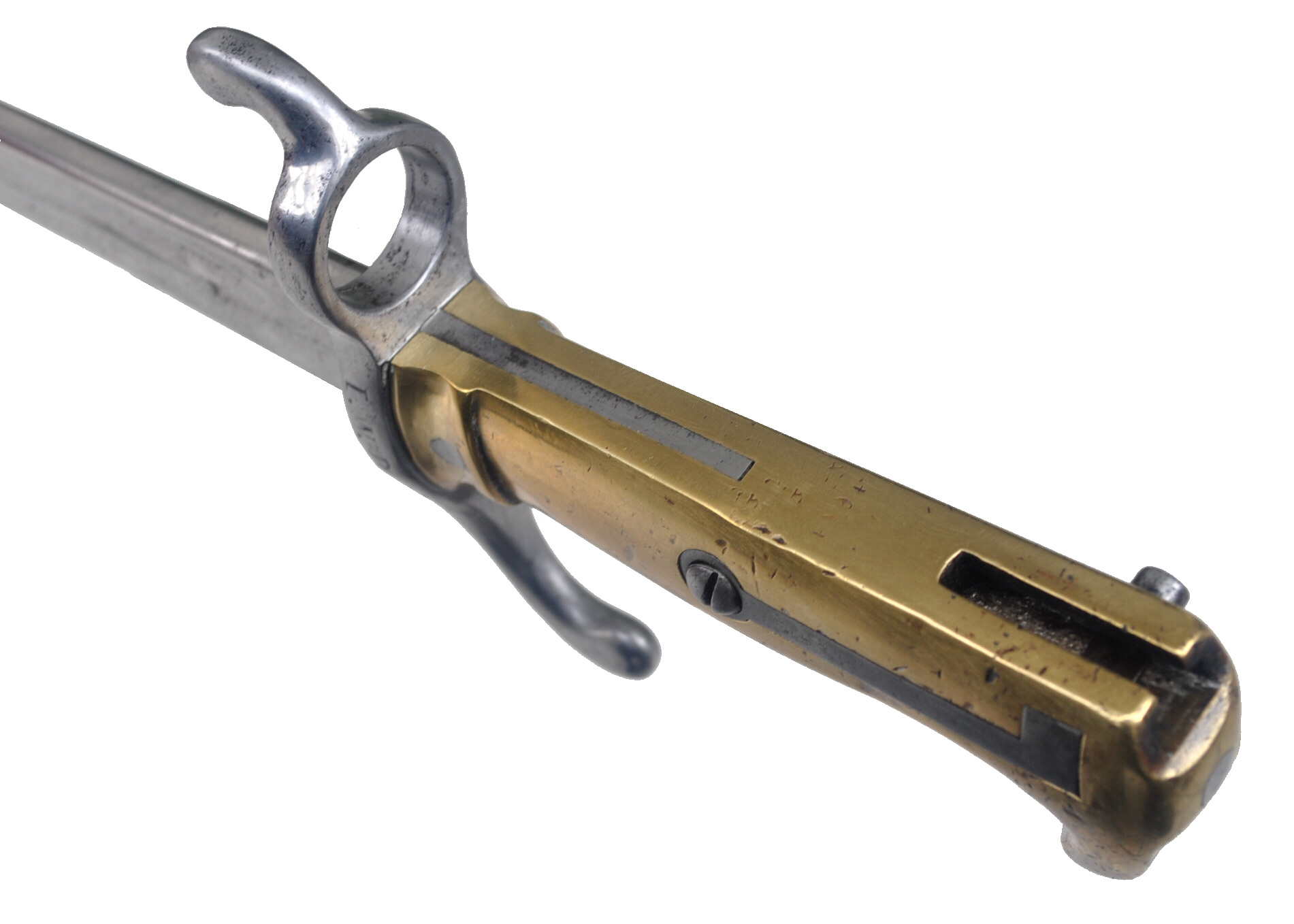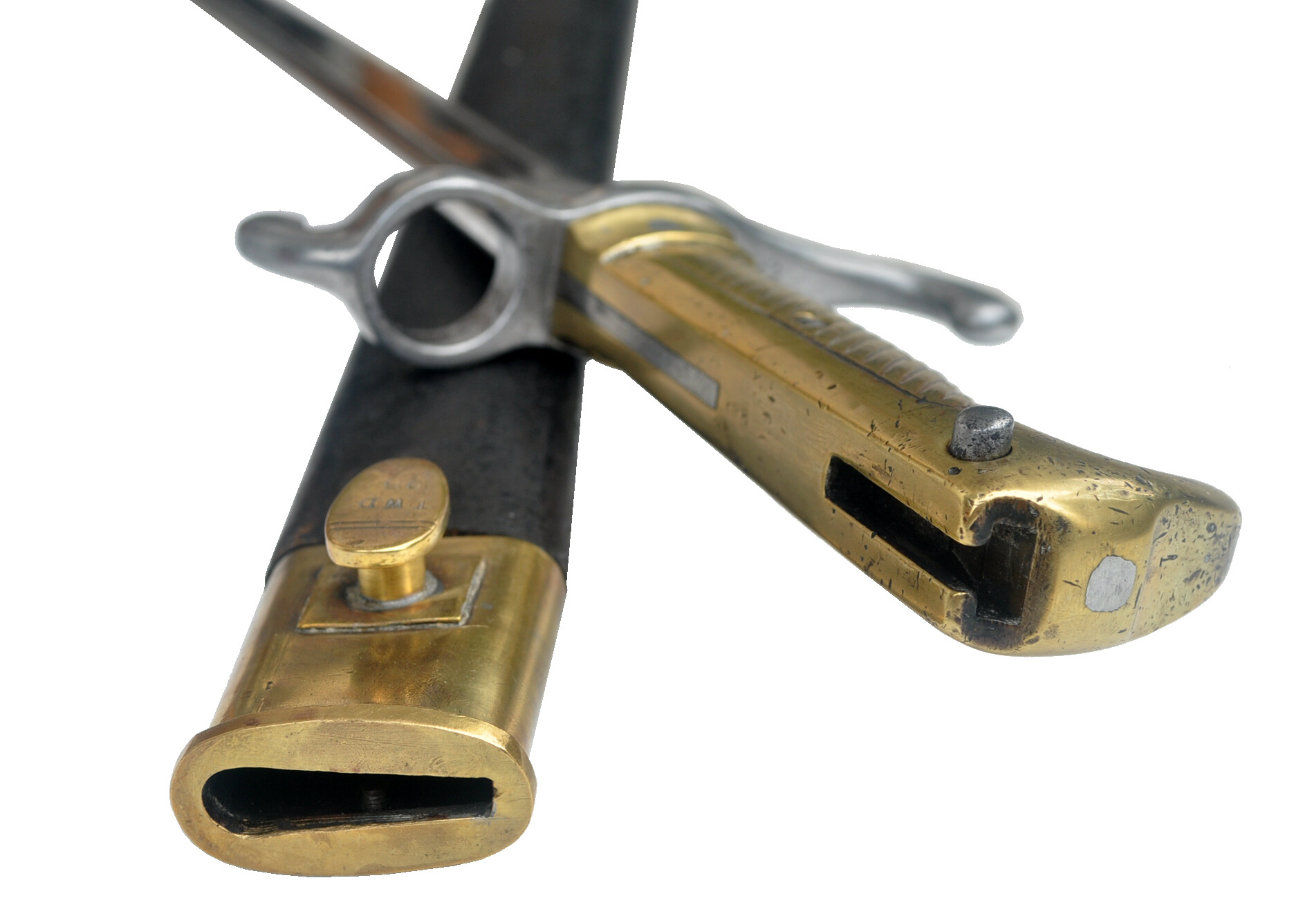 Das gezeigte Seitengewehr besitzt deshalb keinen für das Gewehr 71 ausgebuchsten Laufring.